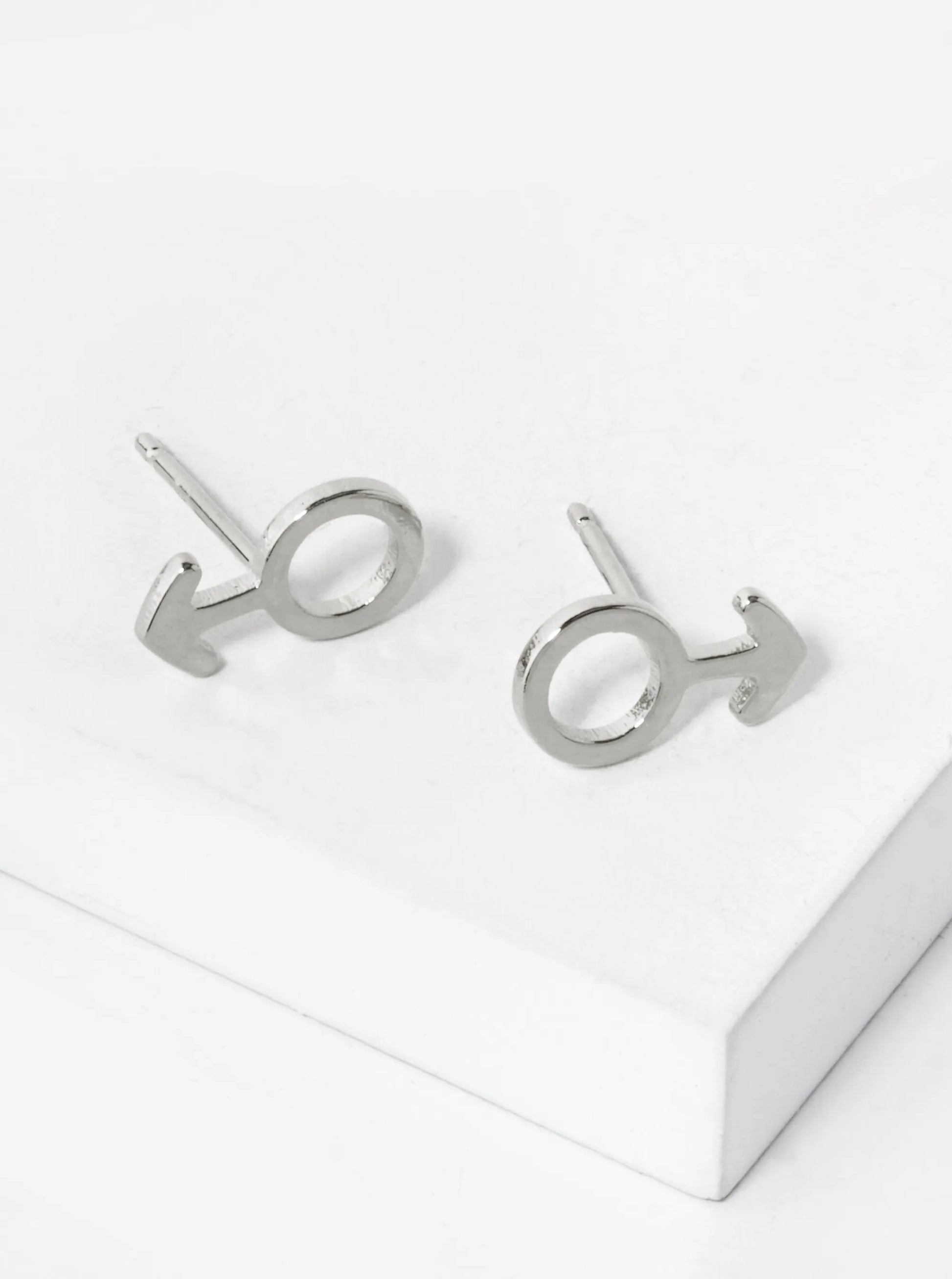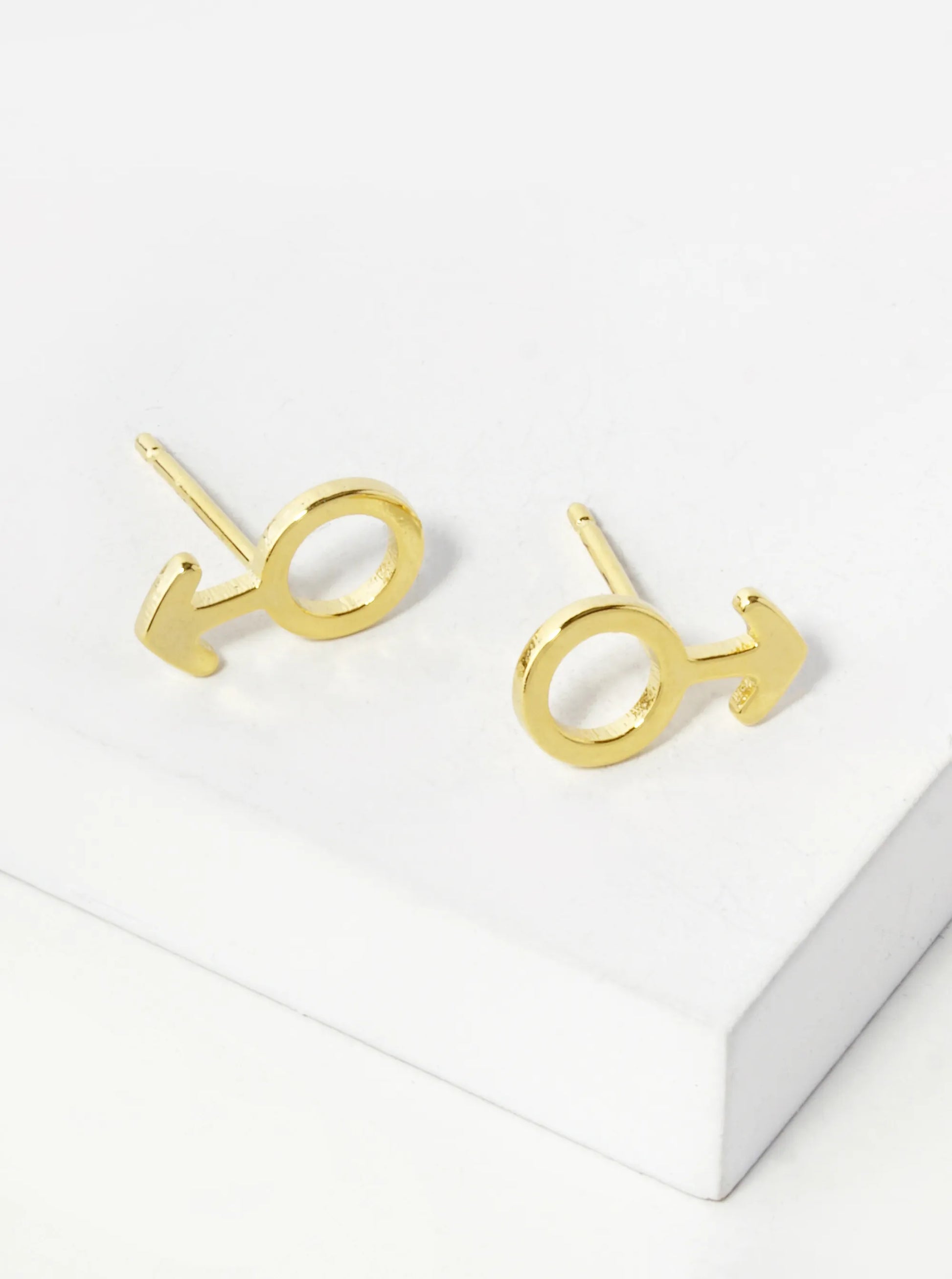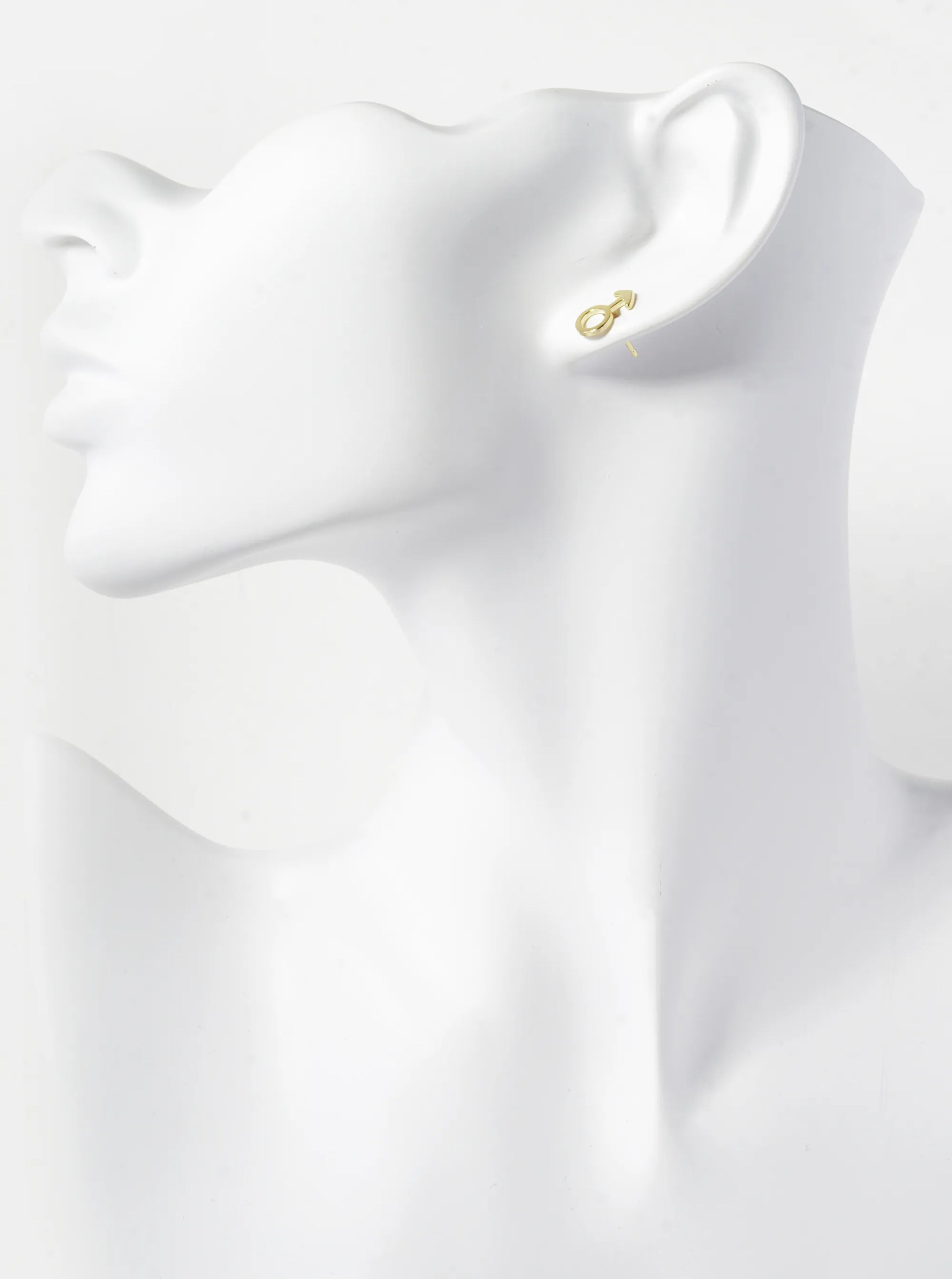 18K Gold Dipped 11mm Brass Male Gender Symbol Sterling Silver Post Stud Earrings