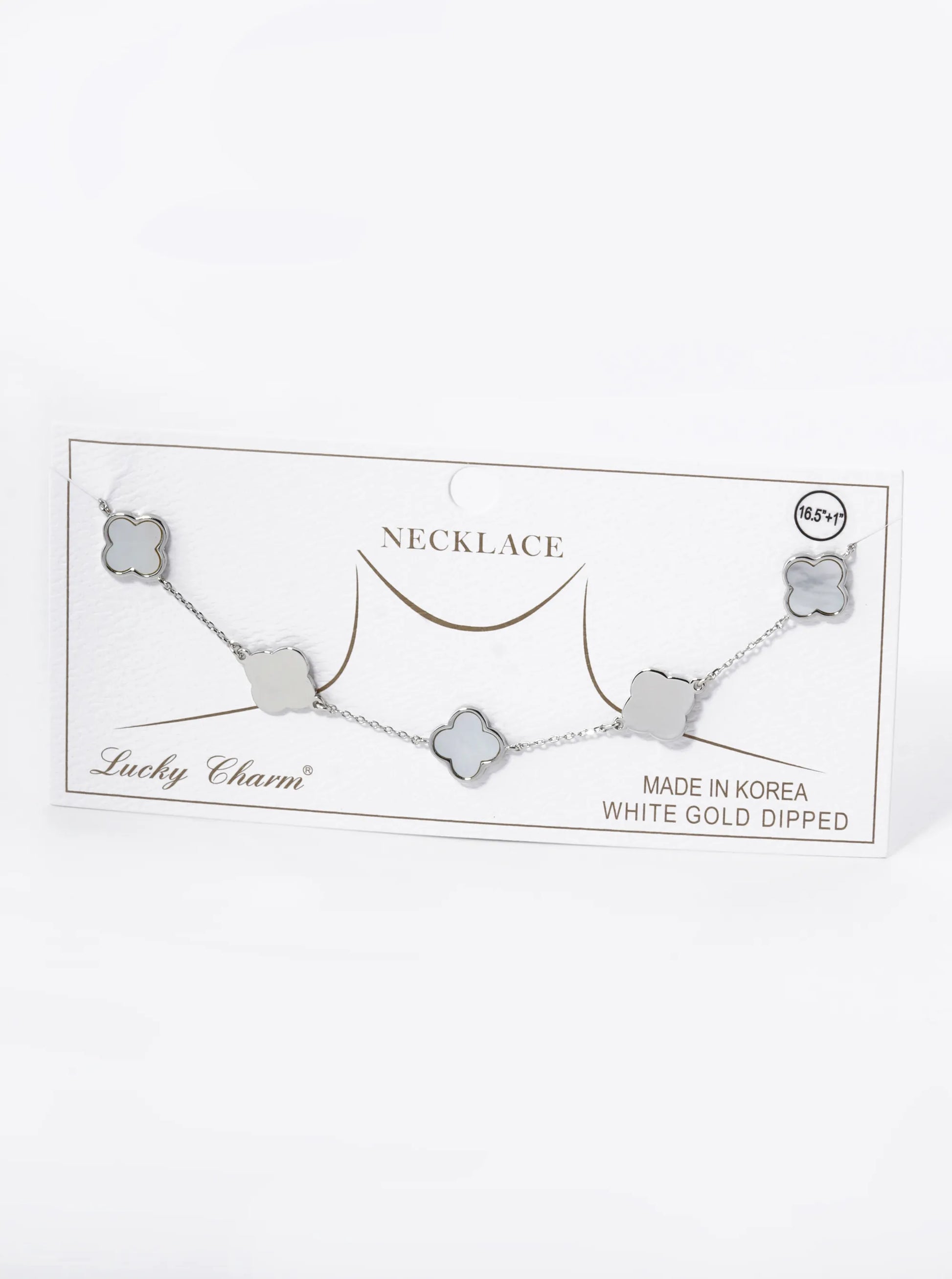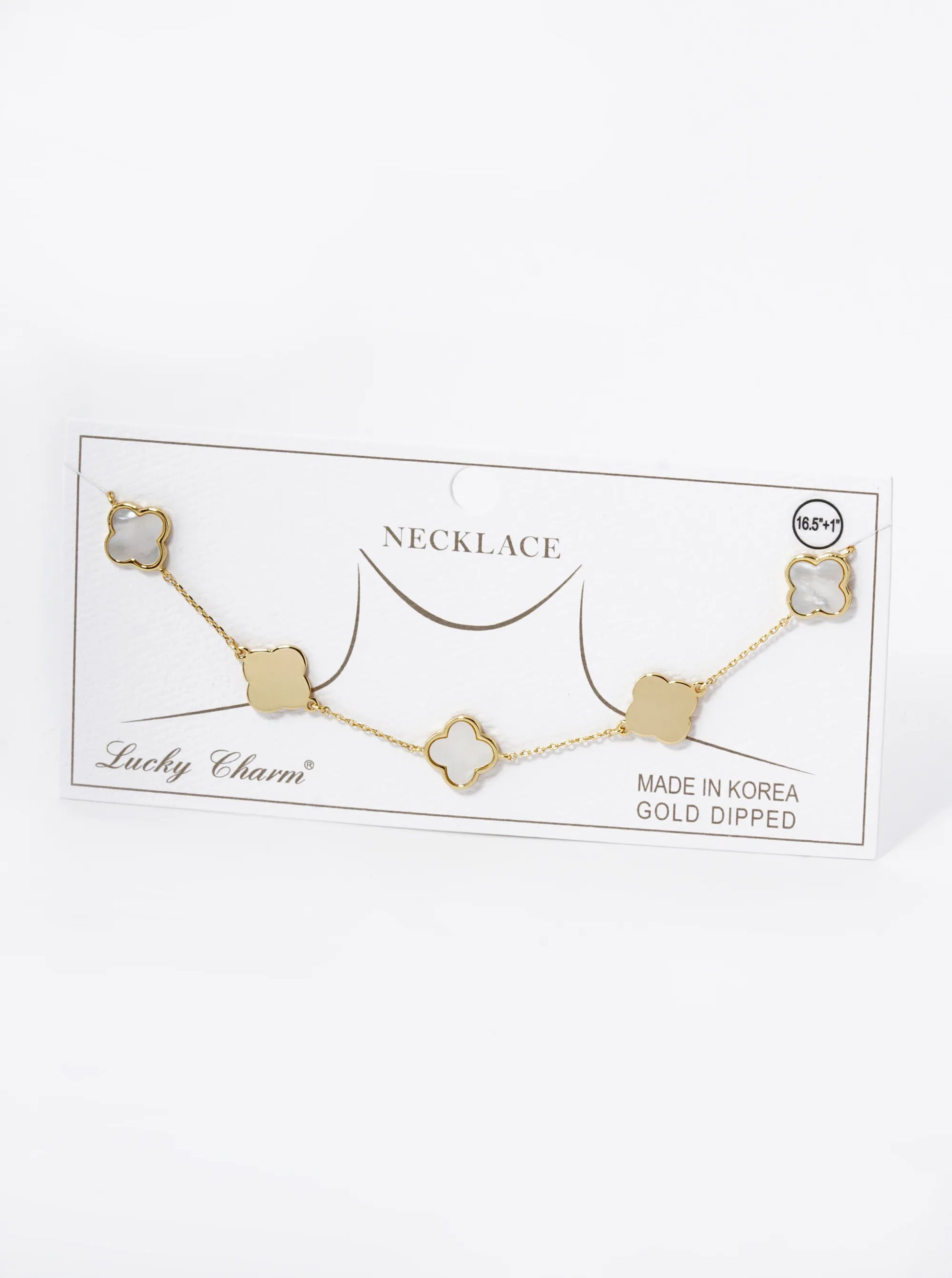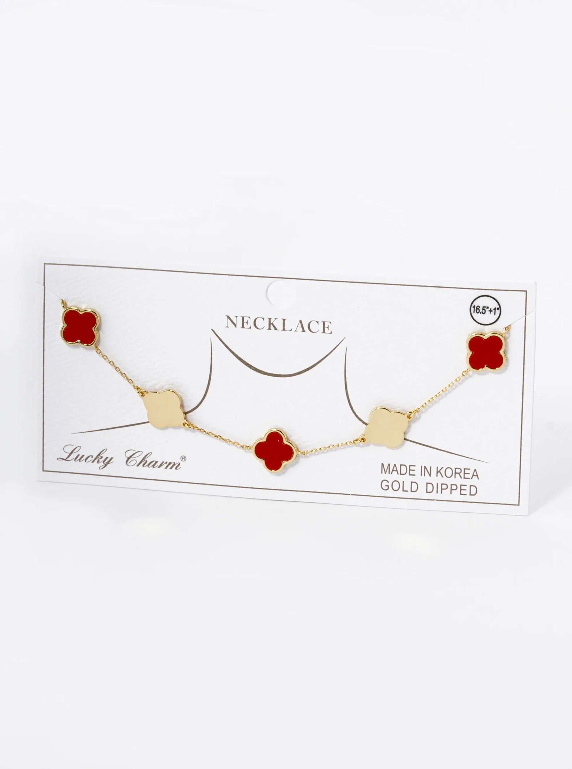 18K Gold Dipped 11mm Five Quatrefoil Station Necklace
