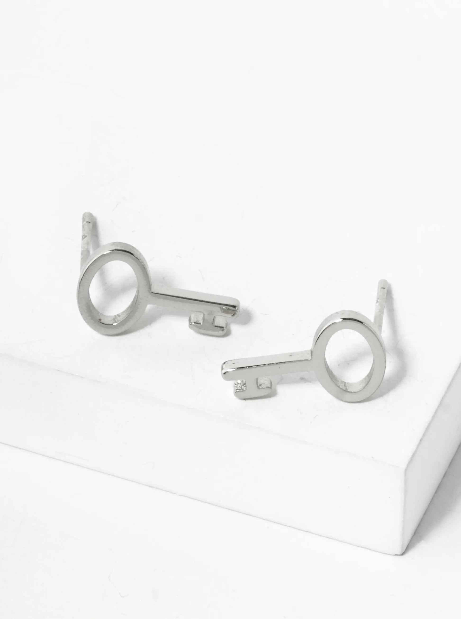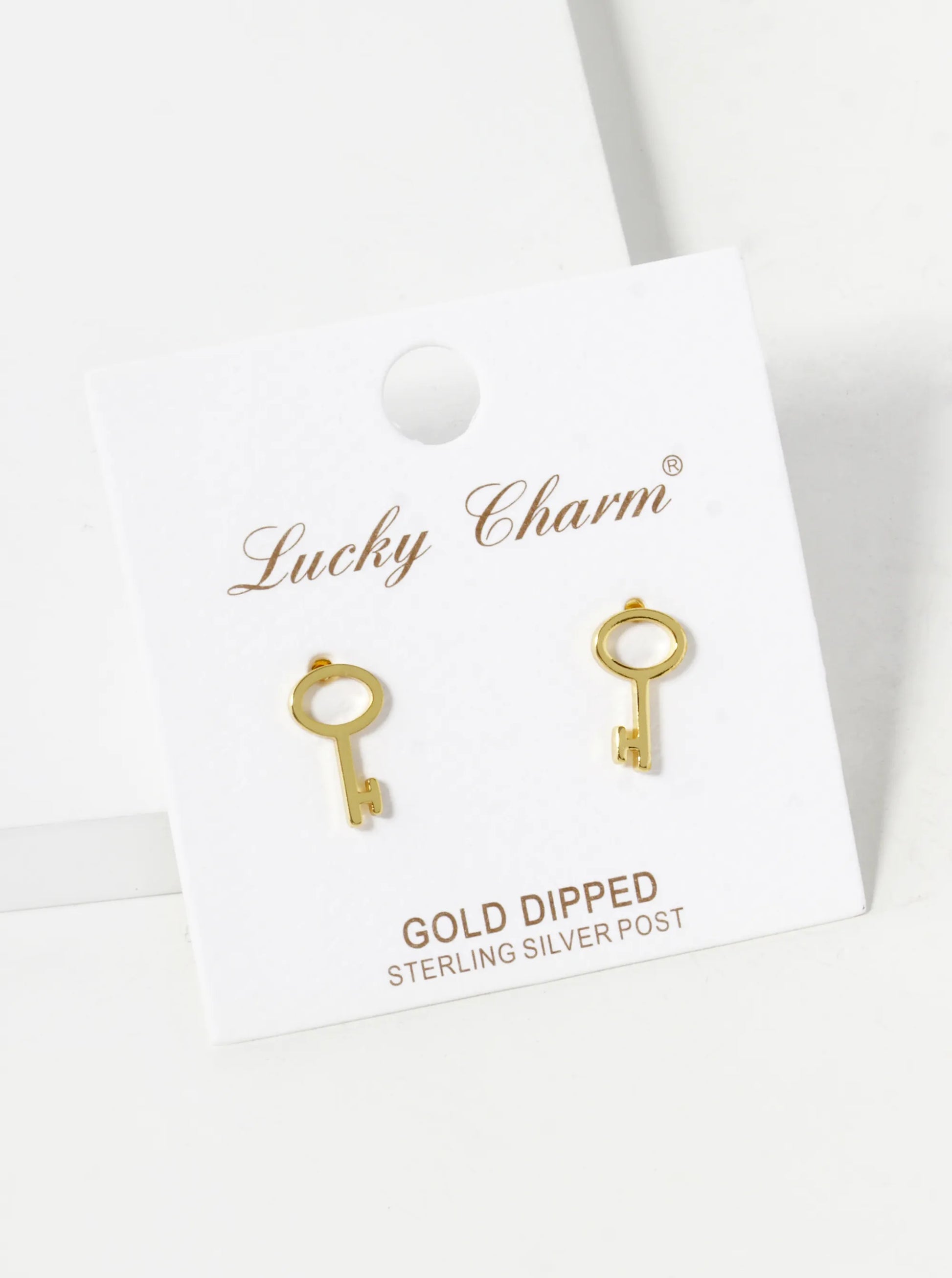 18K Gold Dipped 12mm Brass Key Sterling Silver Post Stud Earrings