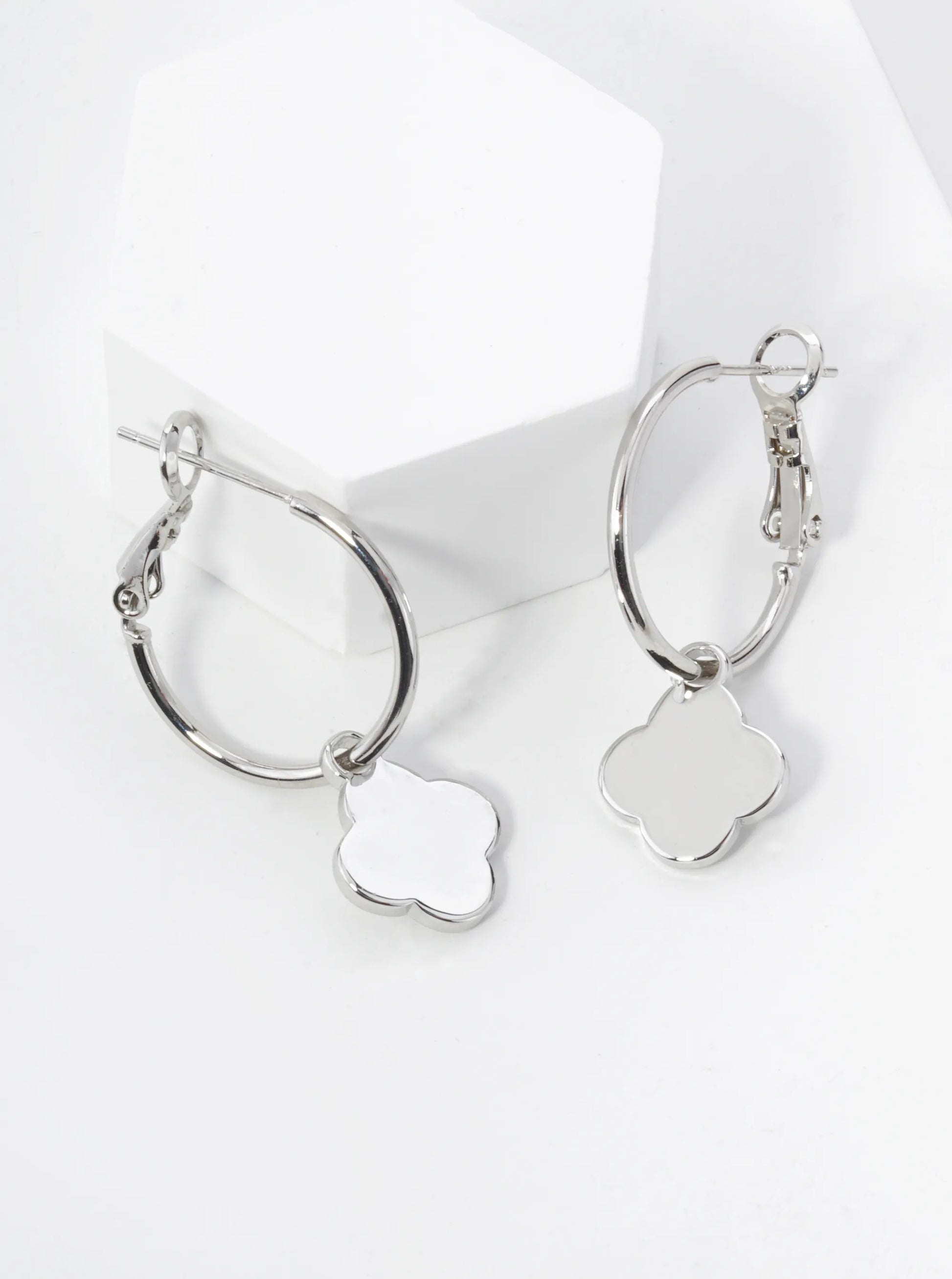 18K Gold Dipped 12mm Quatrefoil Drop 20mm Leverback Hoop Earrings