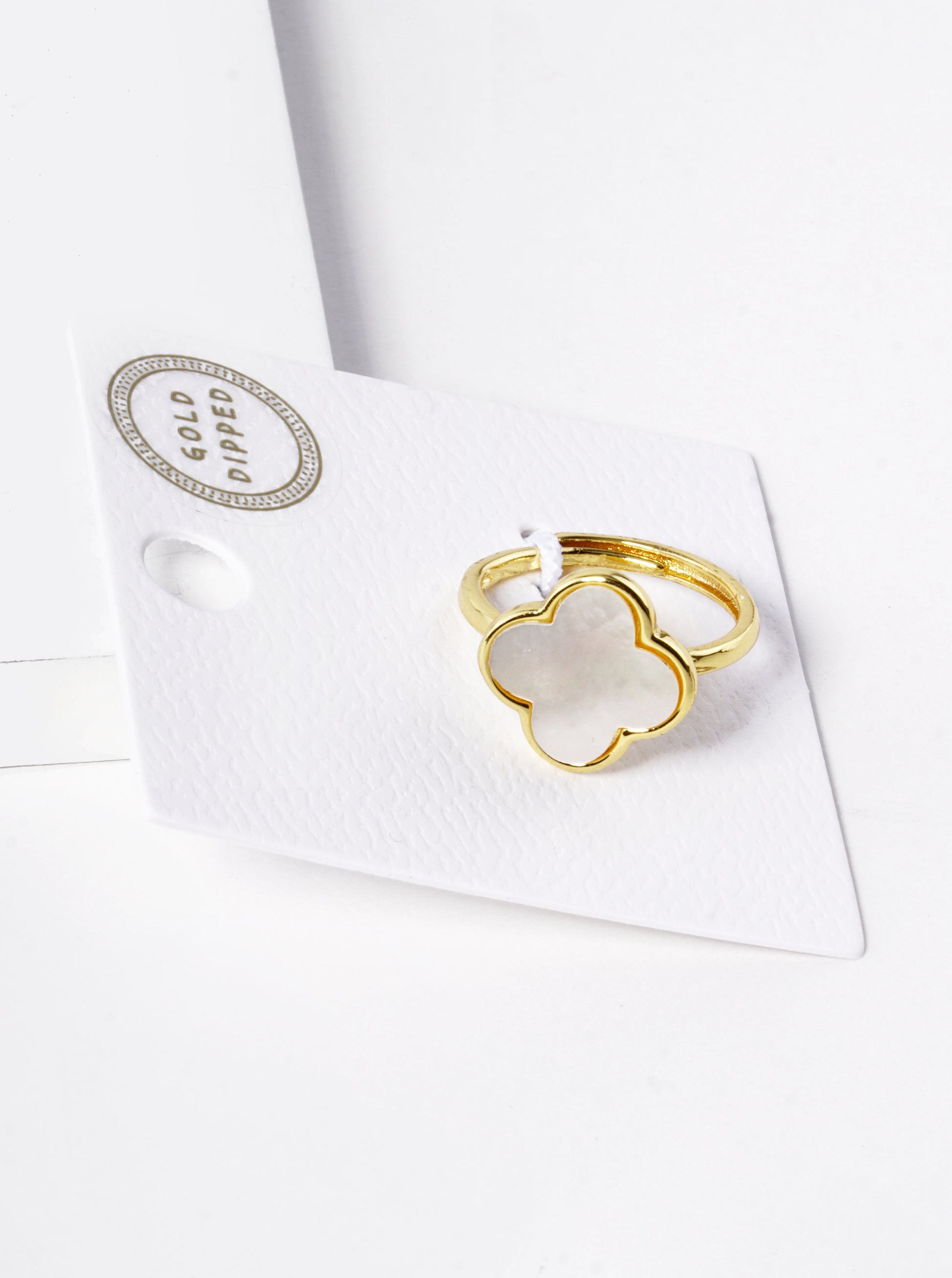 18K Gold Dipped 14mm Semi-Precious Quatrefoil Adjustable Ring