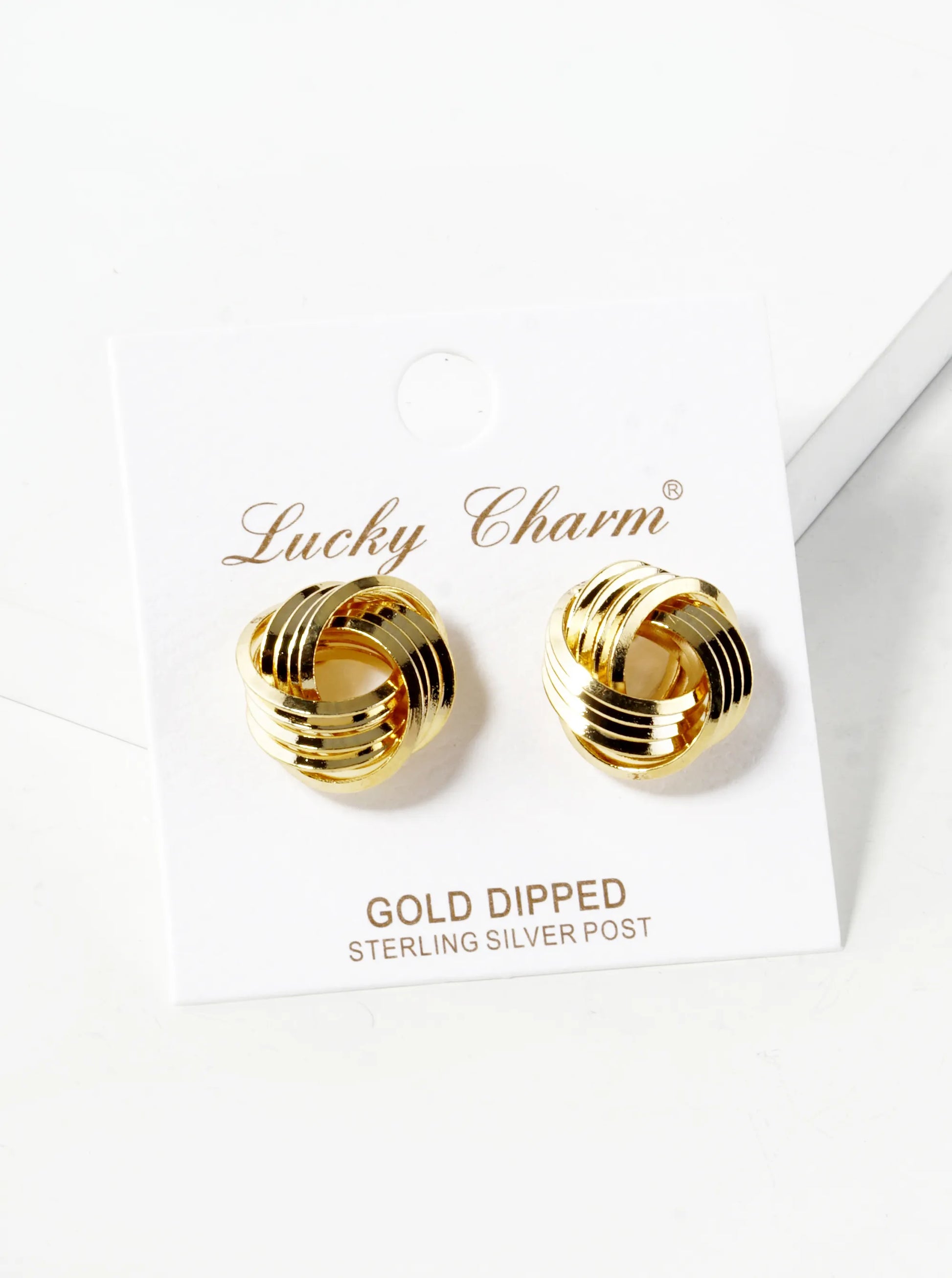 18K Gold Dipped 15mm Textured Love Knot Stud Earrings