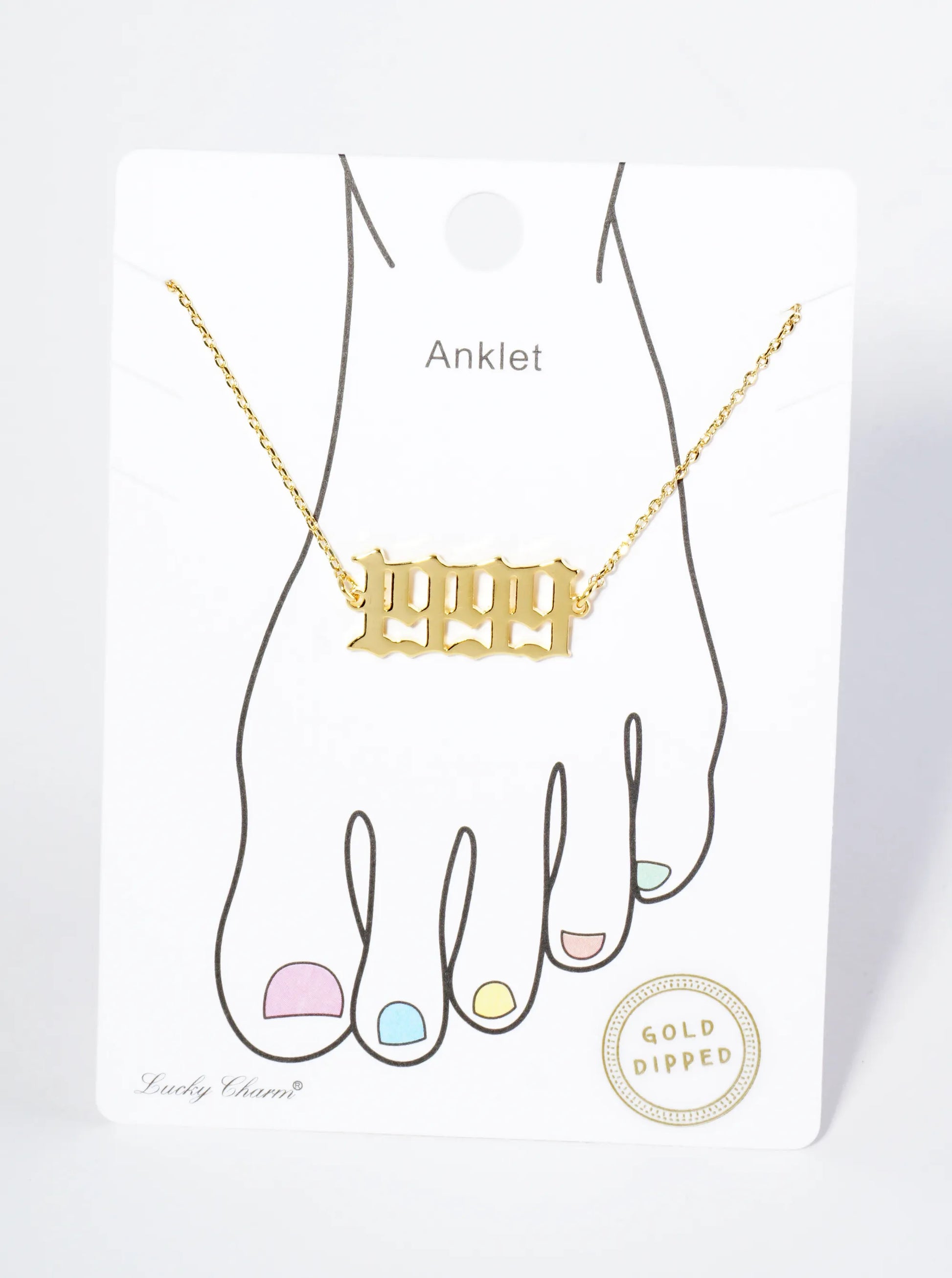 18K Gold Dipped 1999 Birth Year Brass Chain Anklet