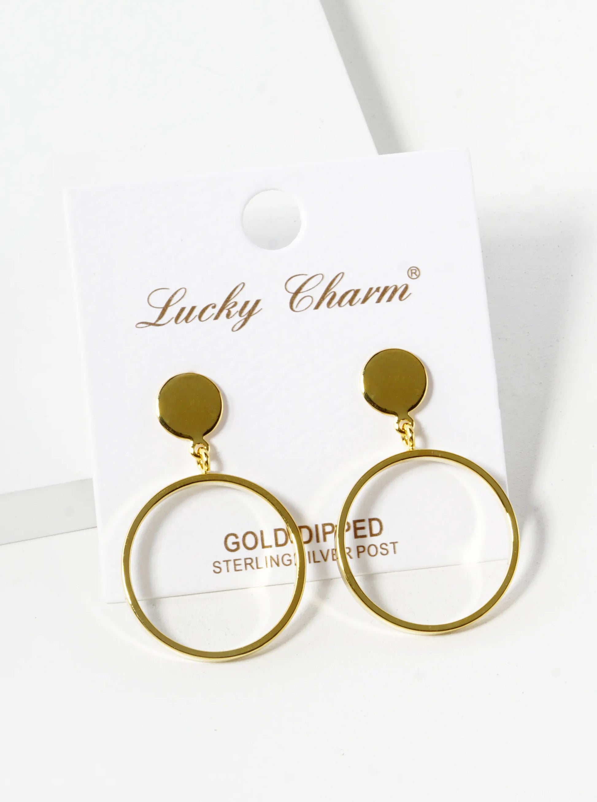 18K Gold Dipped 20mm Brass Circle Drop Sterling Silver Post Dangle Earrings