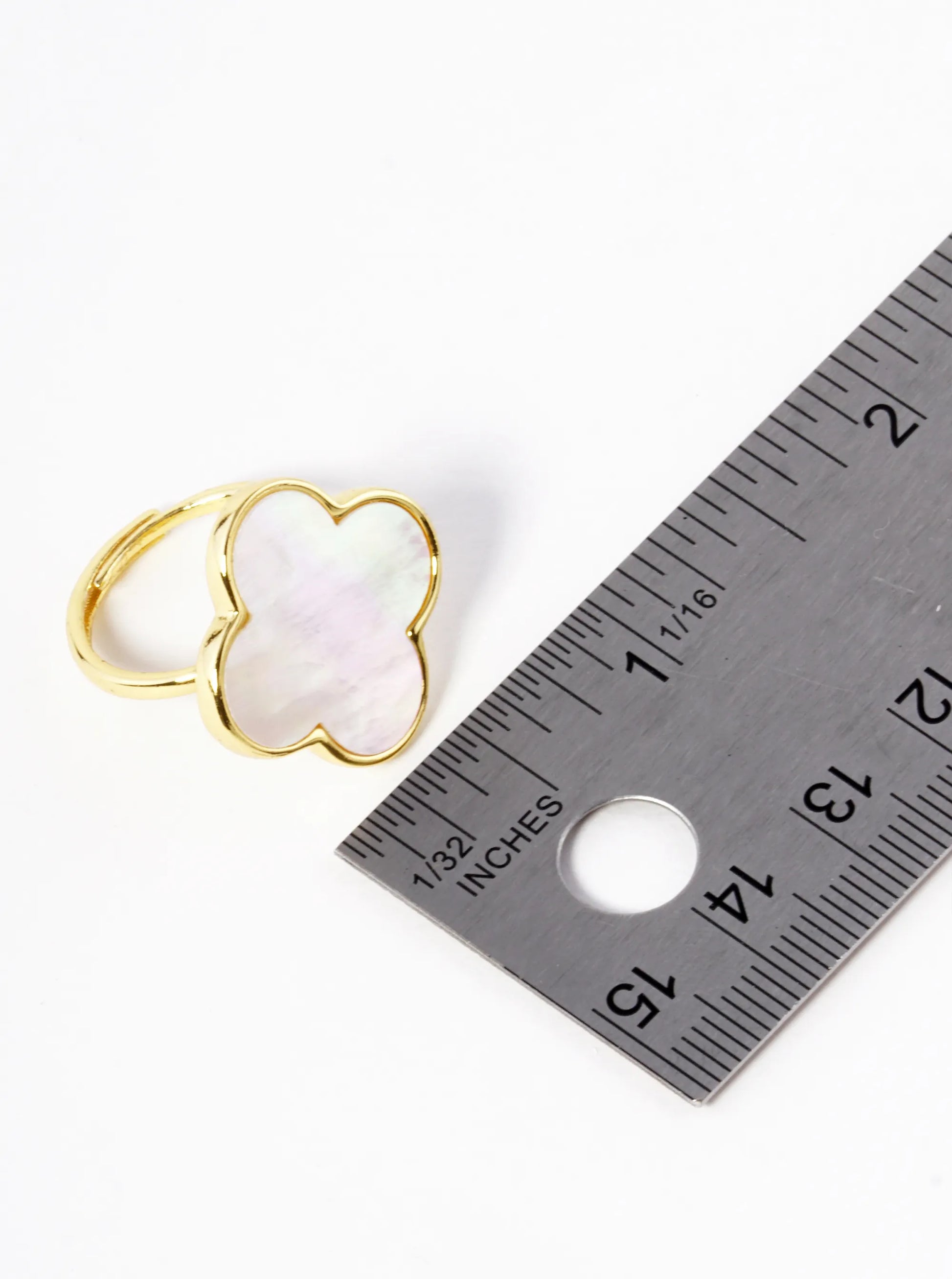 18K Gold Dipped 22mm Semi-Precious Quatrefoil Adjustable Ring