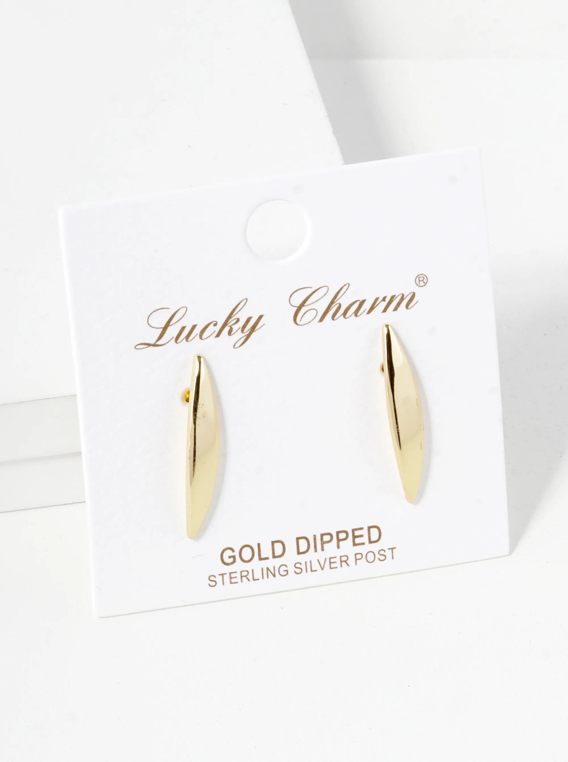 18K Gold Dipped 22mm Tapered Brass Marquise Bar Sterling Silver Post Stud Earrings