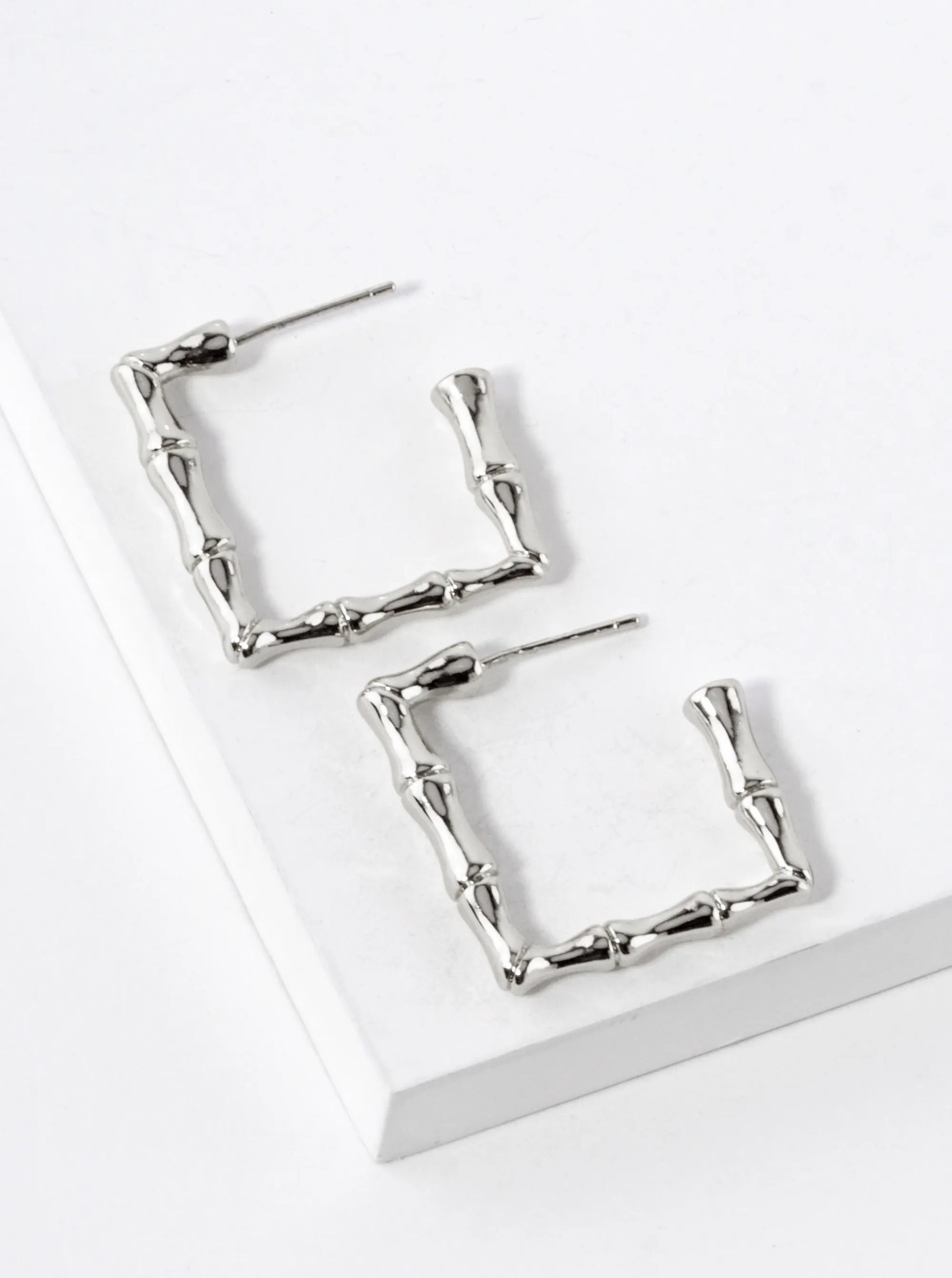 18K Gold Dipped 23mm Bamboo Square Hoop Earrings