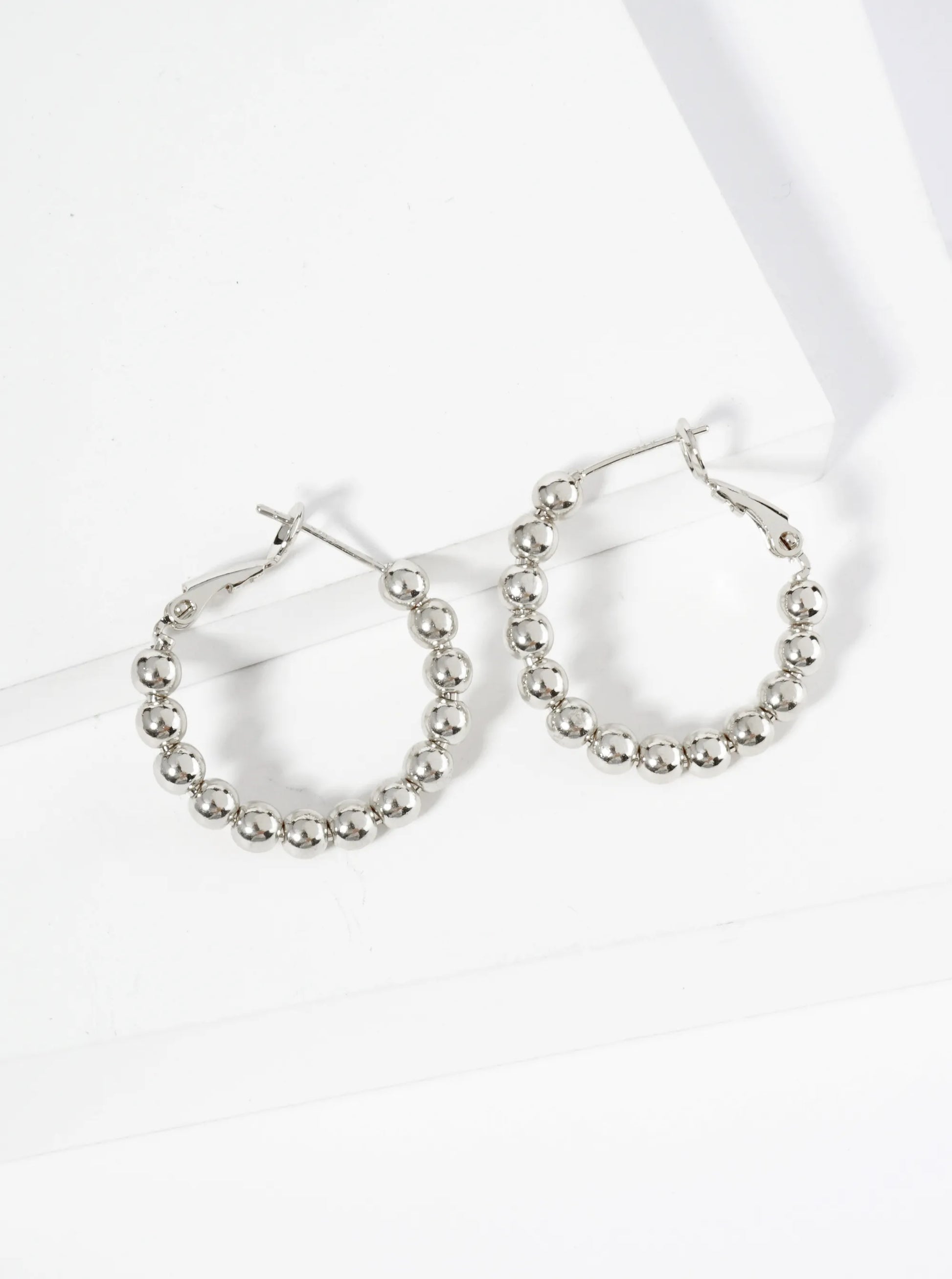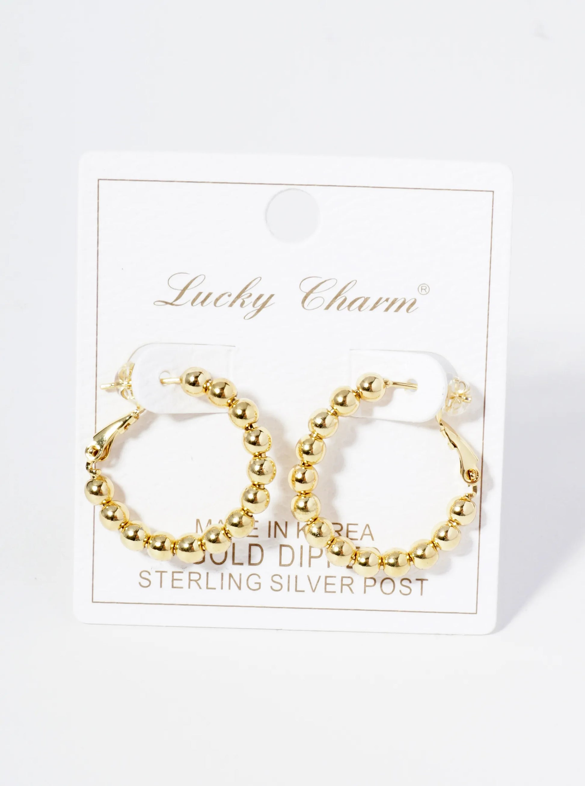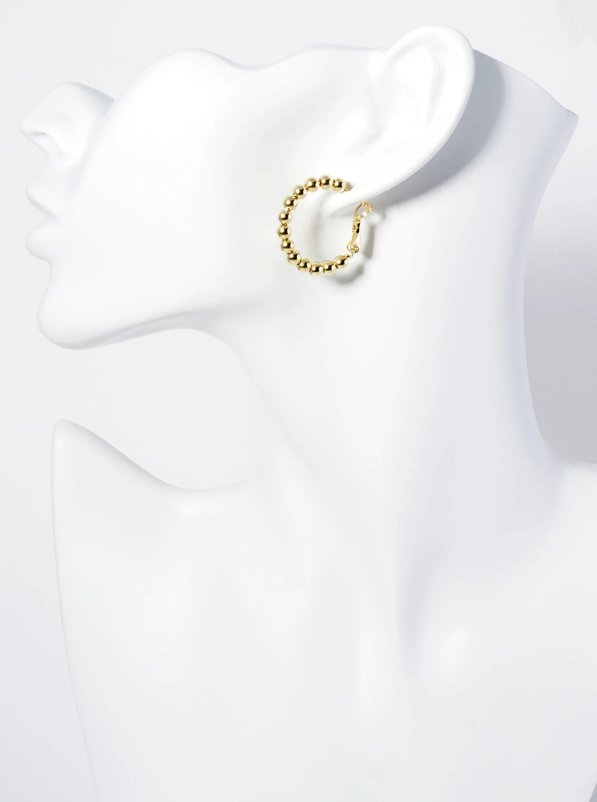 18K Gold Dipped 25mm Brass Ball Beaded Hoop Earrings With Latch Back Closure