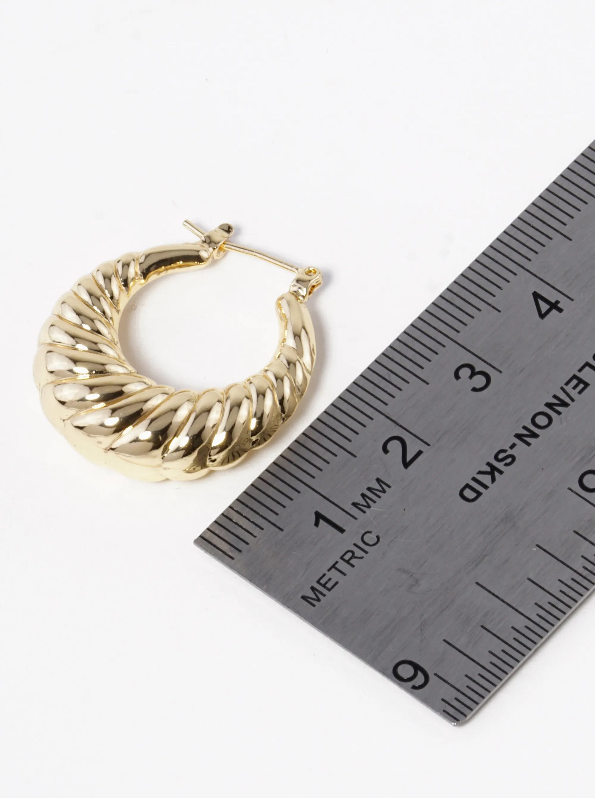 18k Gold Dipped 25mm Textured Hollow Puffy Hoop Earrings