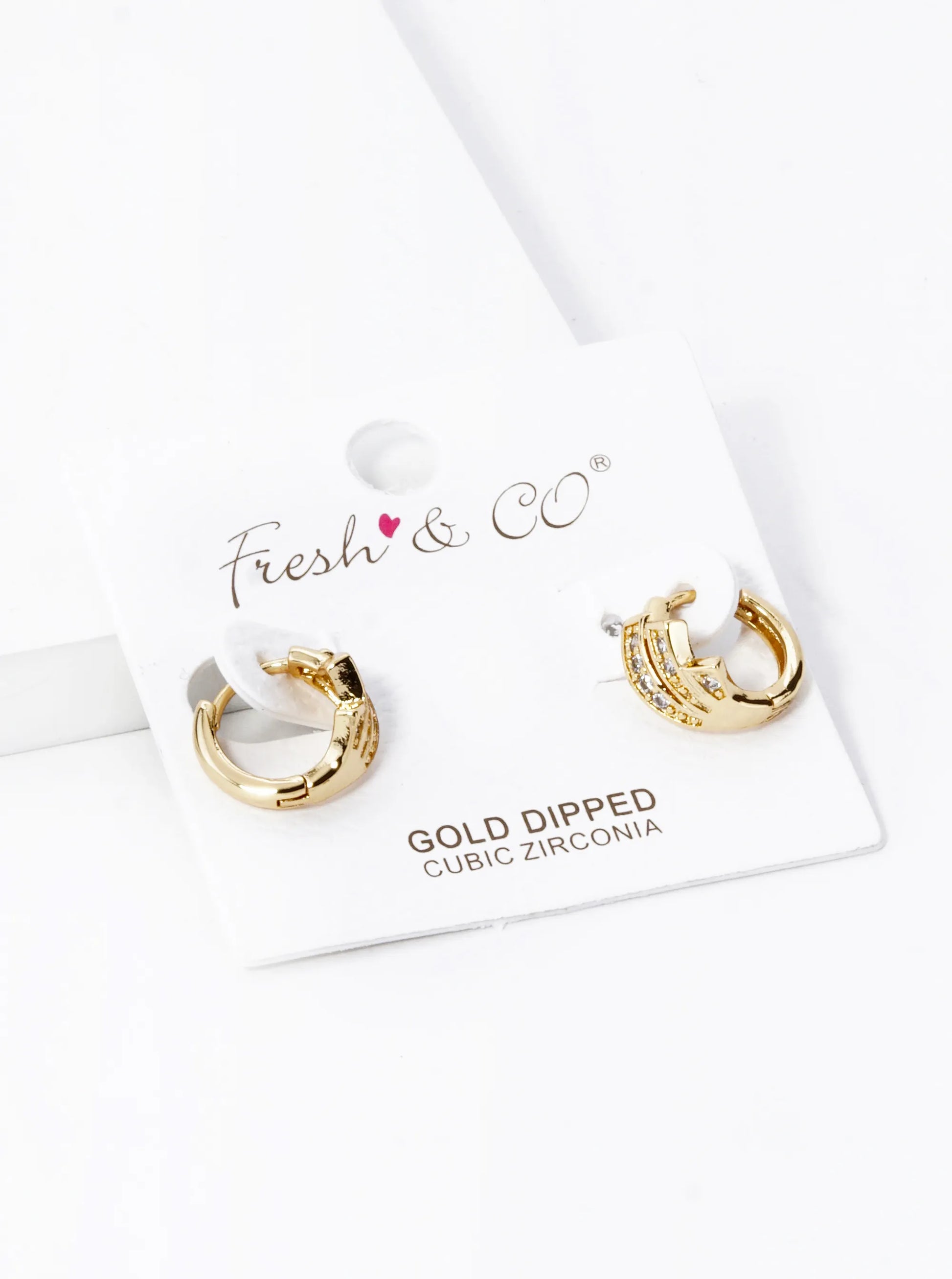 18K Gold Dipped 3 Line Cubic Zirconia 12mm Huggie Hoop Earrings