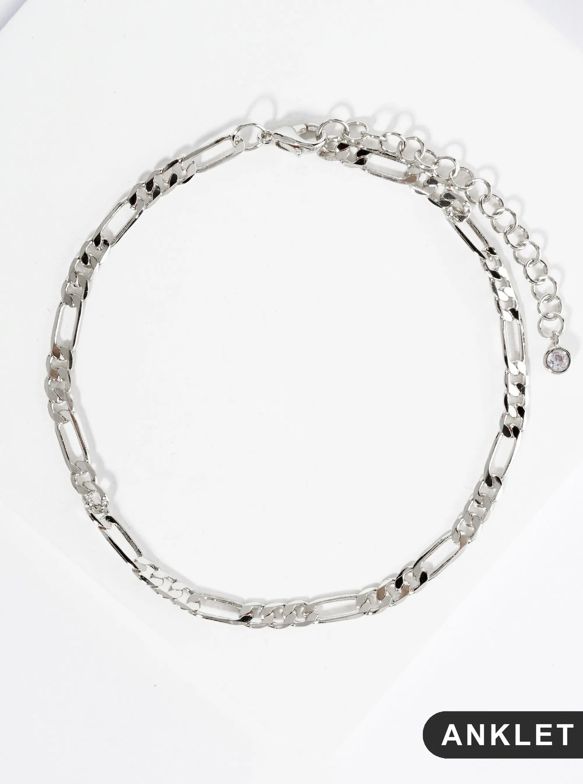 18K Gold Dipped 3mm Brass Figaro Link Chain Anklet