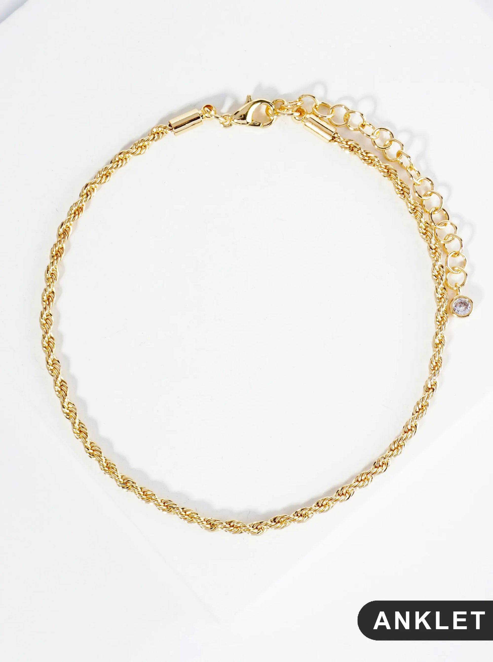 18K Gold Dipped 3mm Textured Brass Rope Chain Anklet