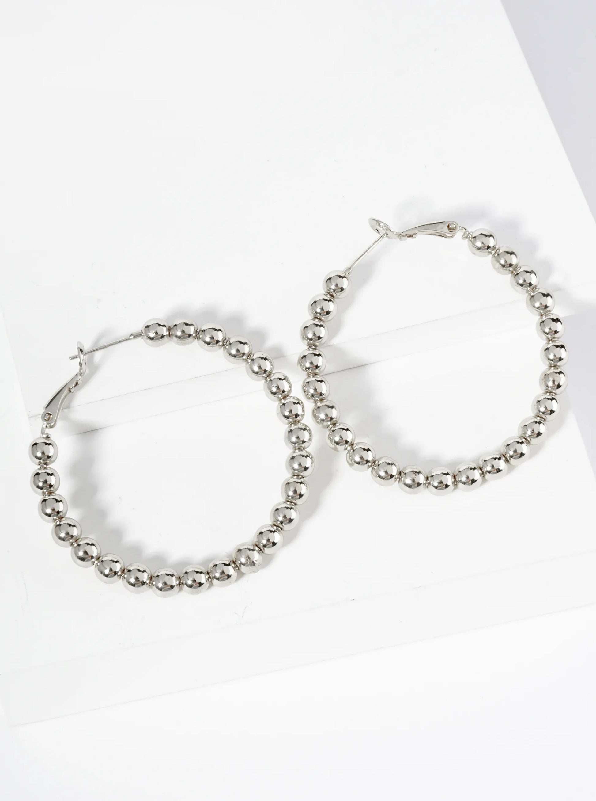 18K Gold Dipped 45mm Brass Ball Beaded Hoop Earrings With Latch Back Closure