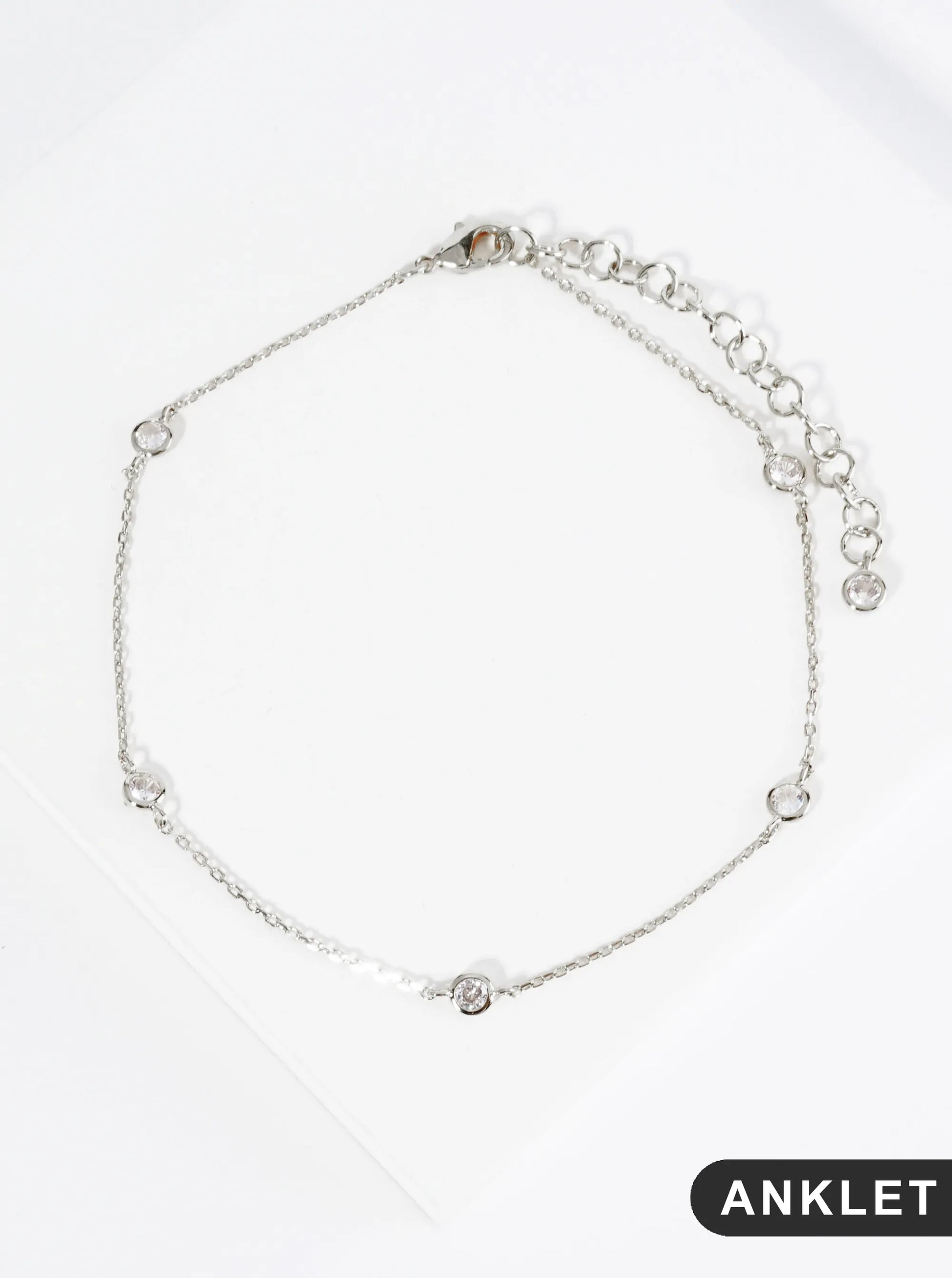 18K Gold Dipped 4mm Five Bezel Set Cubic Zirconia Stone Brass Chain Anklet