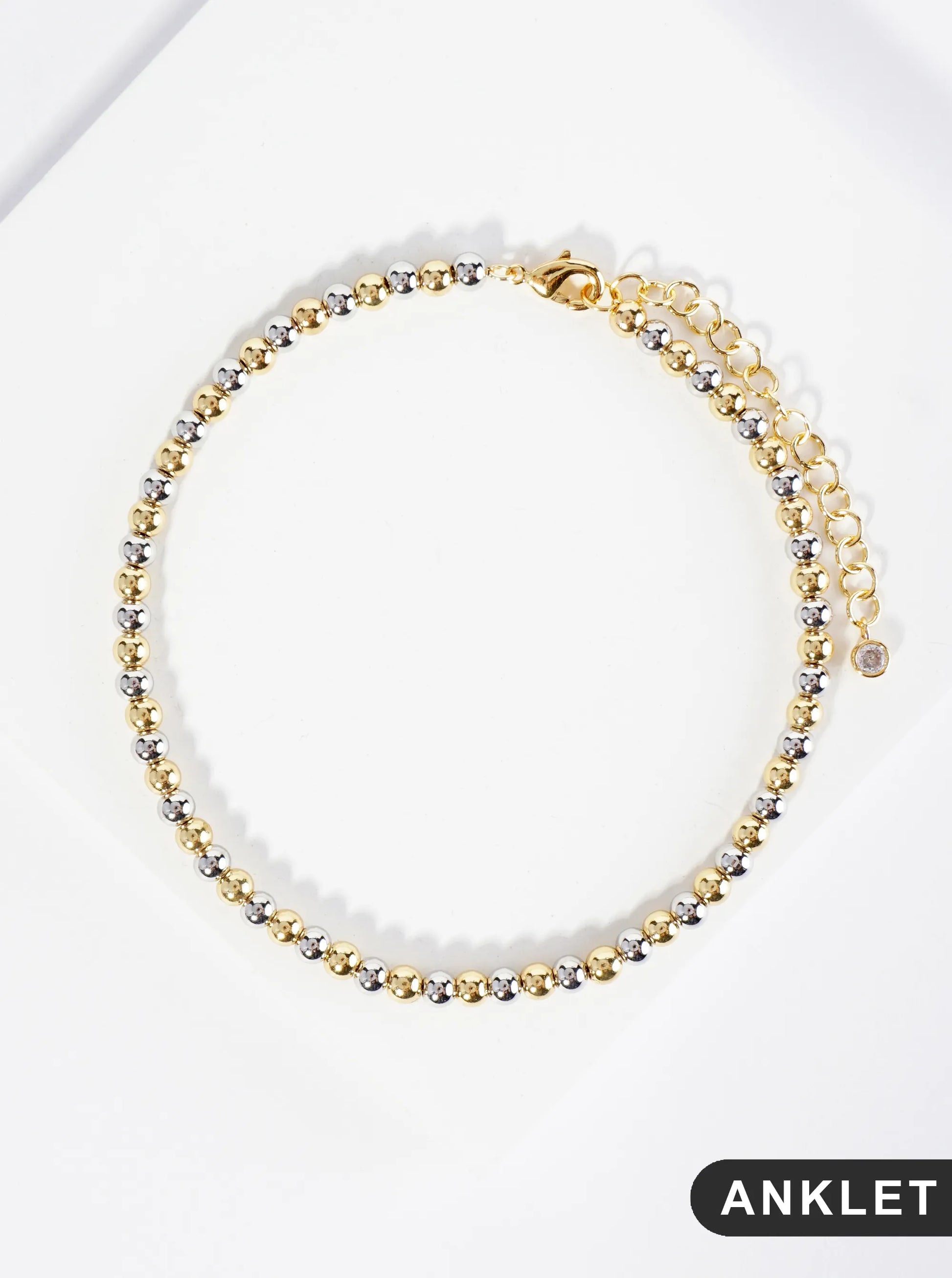 18K Gold Dipped 4mm Metallic Ball Beaded Brass Chain Anklet
