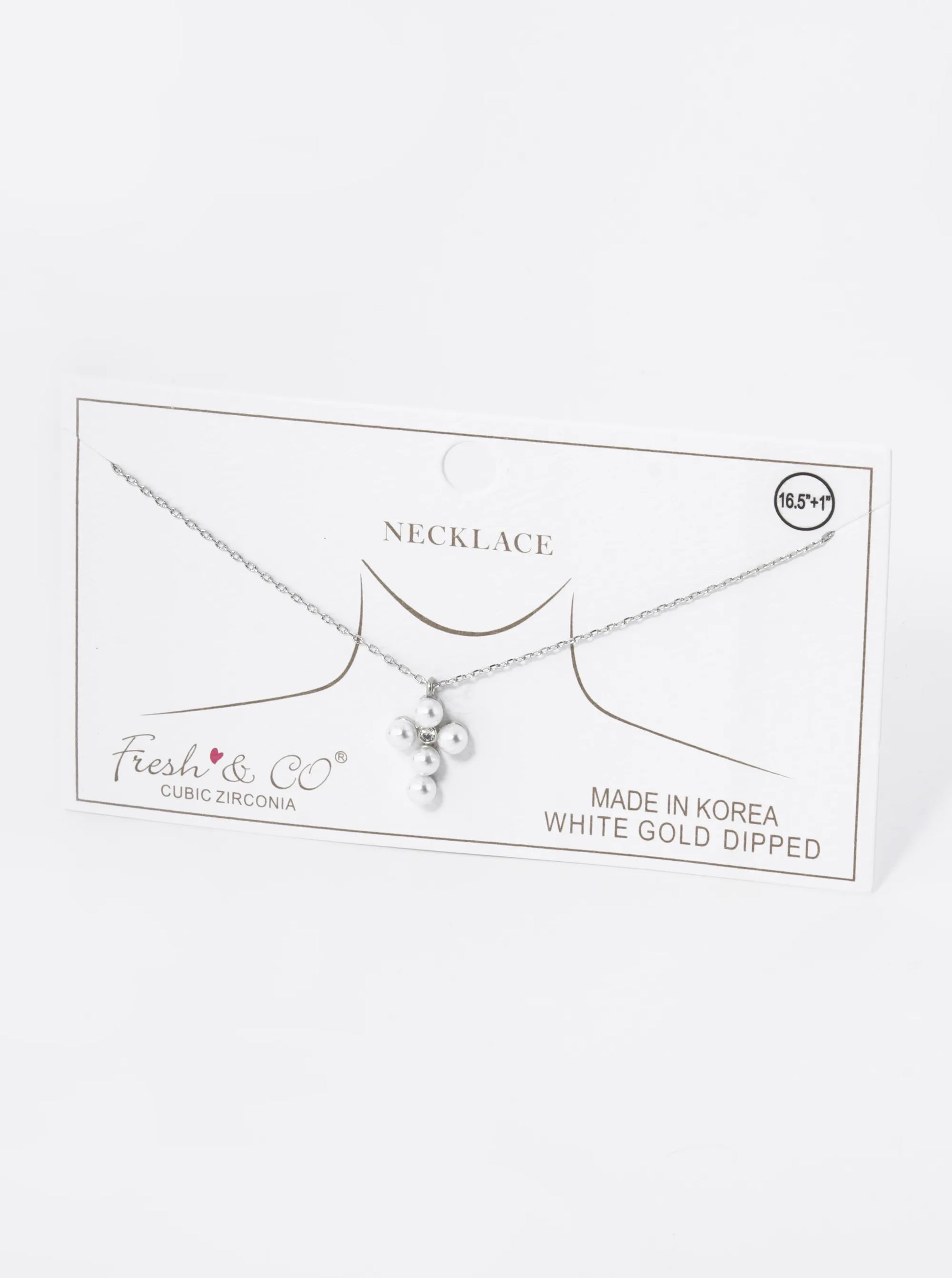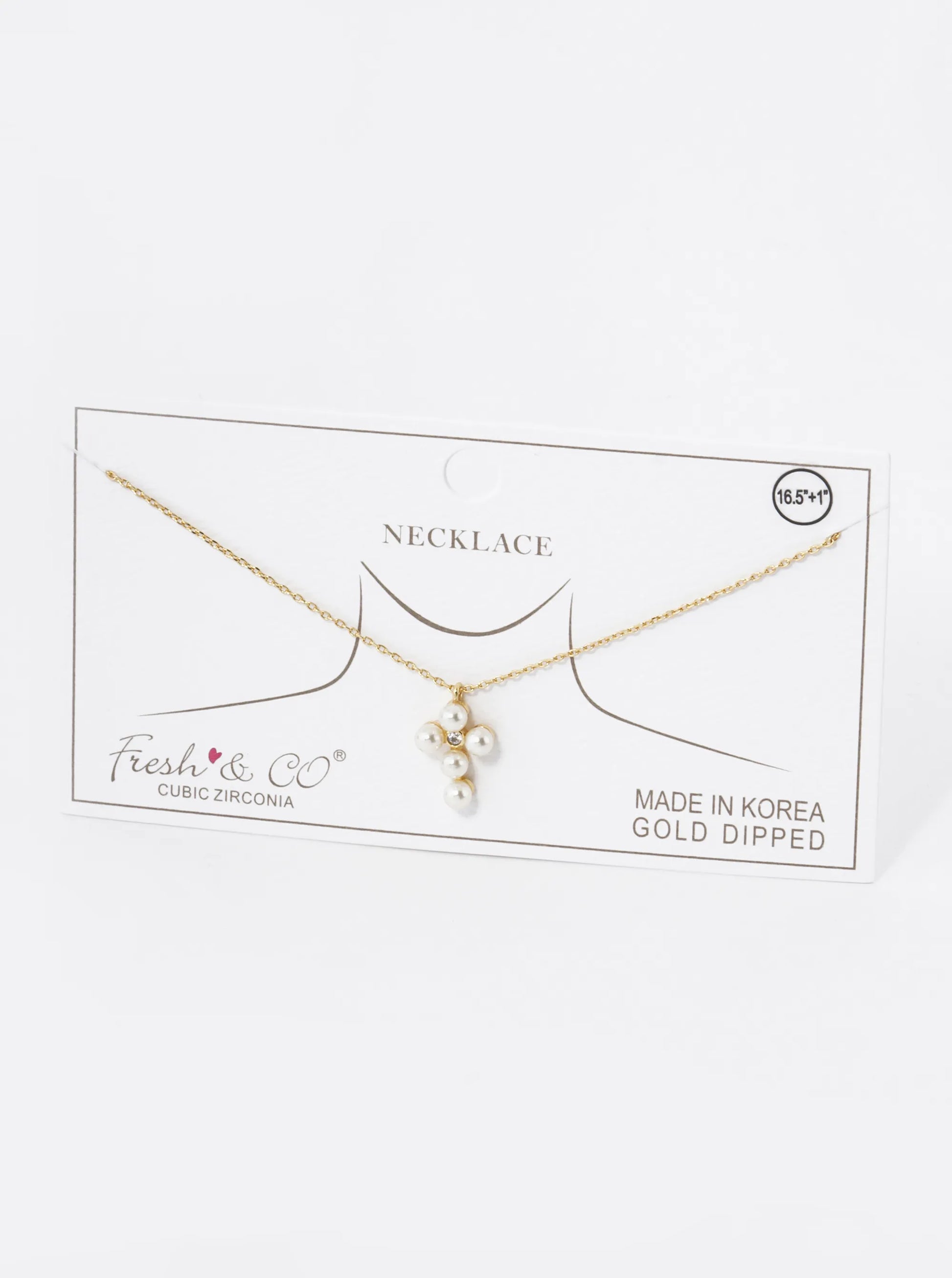 18K Gold Dipped 4mm Pearl Beaded Cross Pendant Necklace