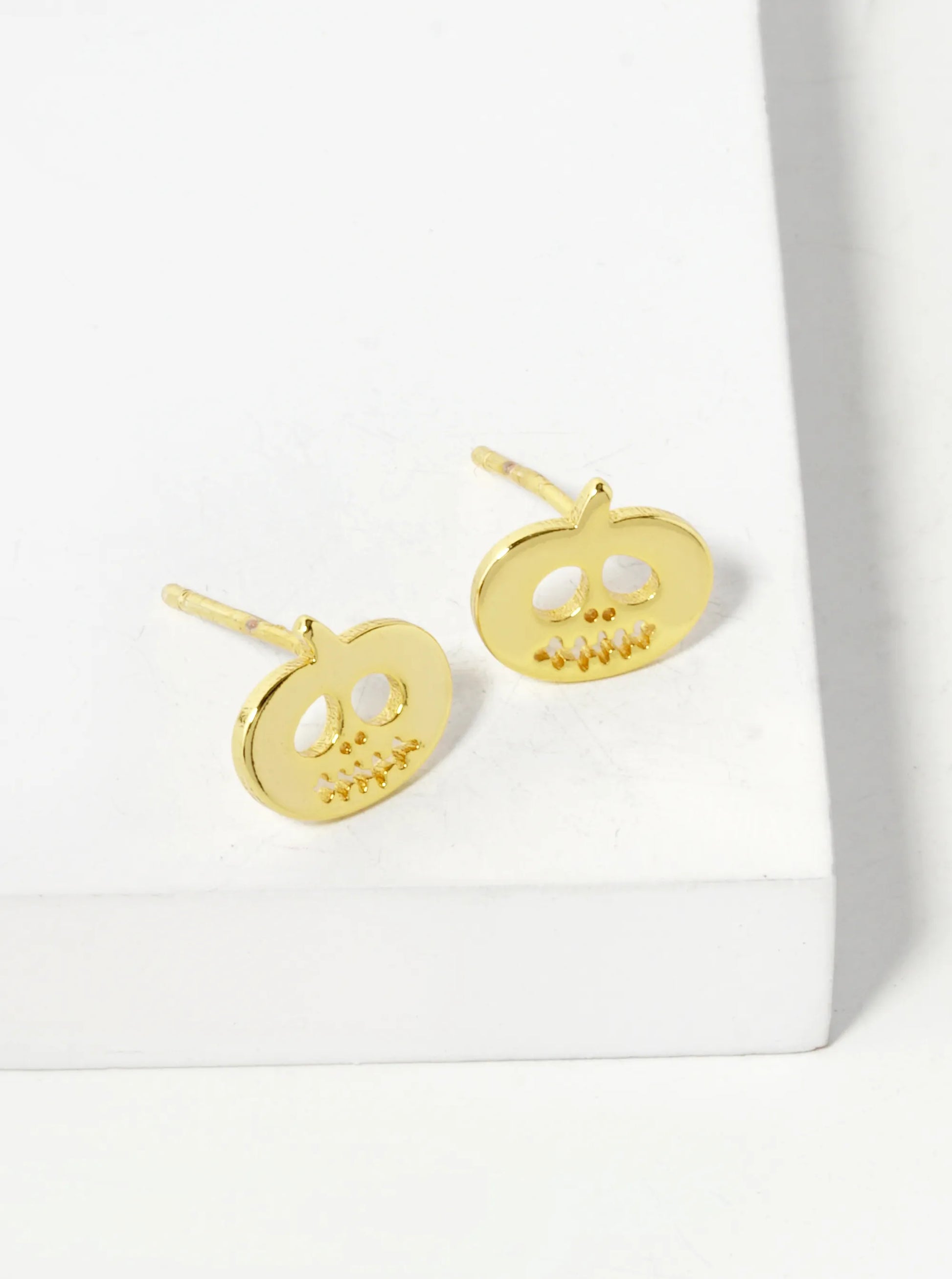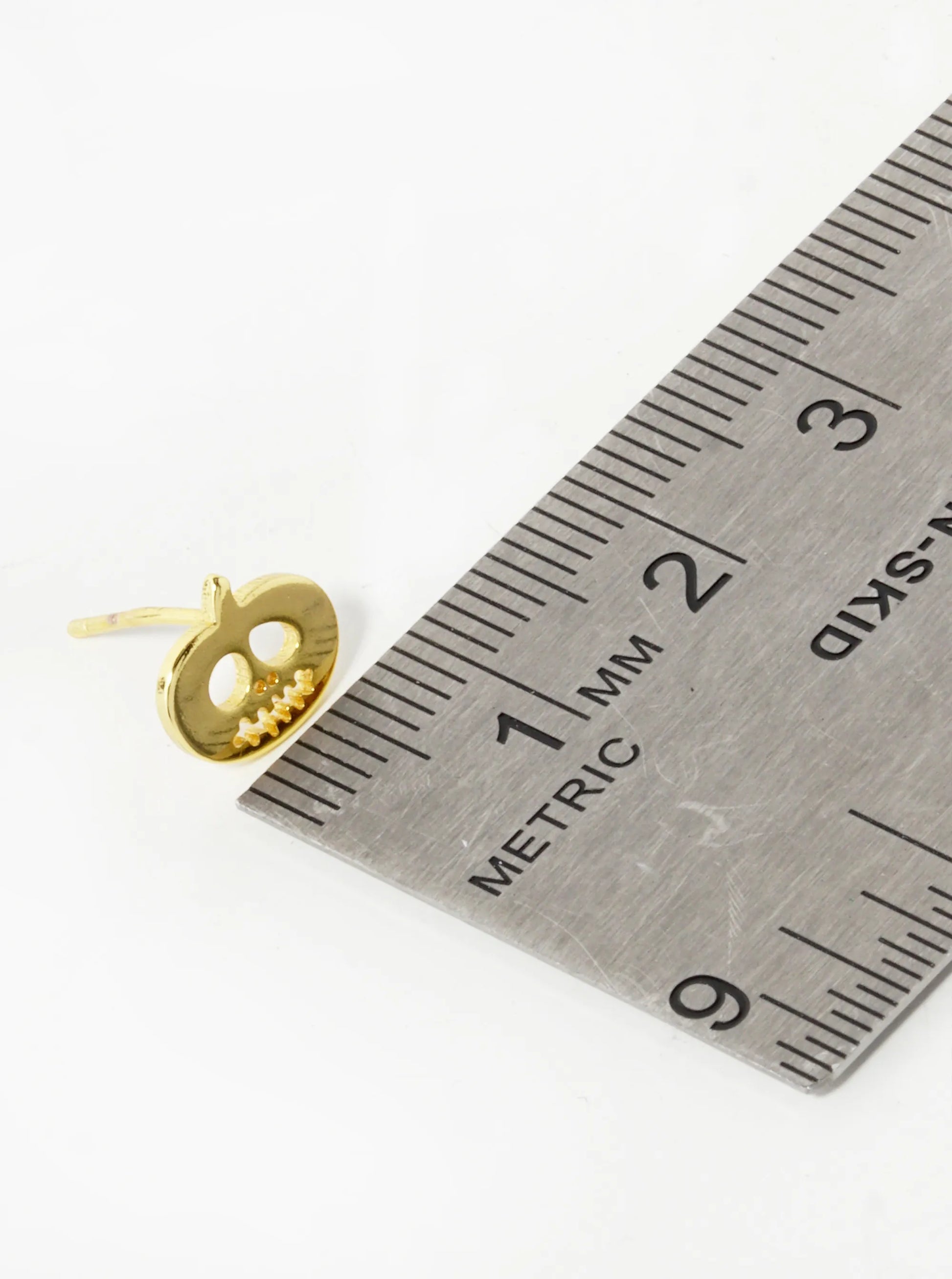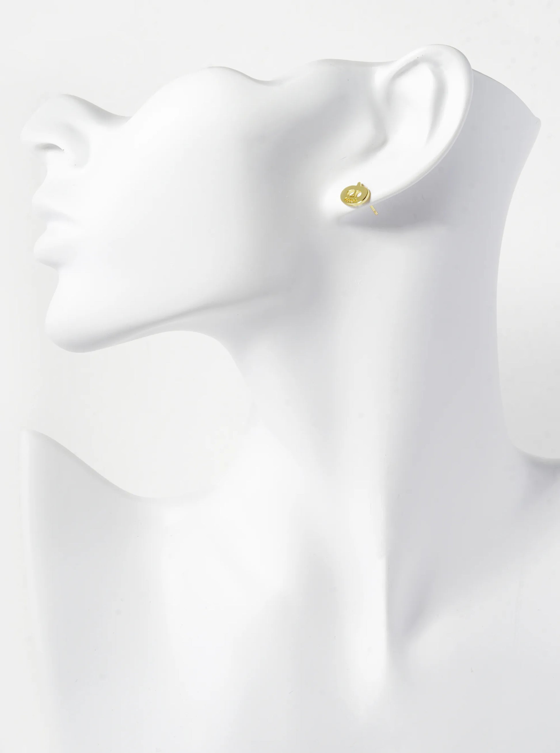 18K Gold Dipped 6mm Brass Pumpkin Sterling Silver Post Halloween Stud Earrings