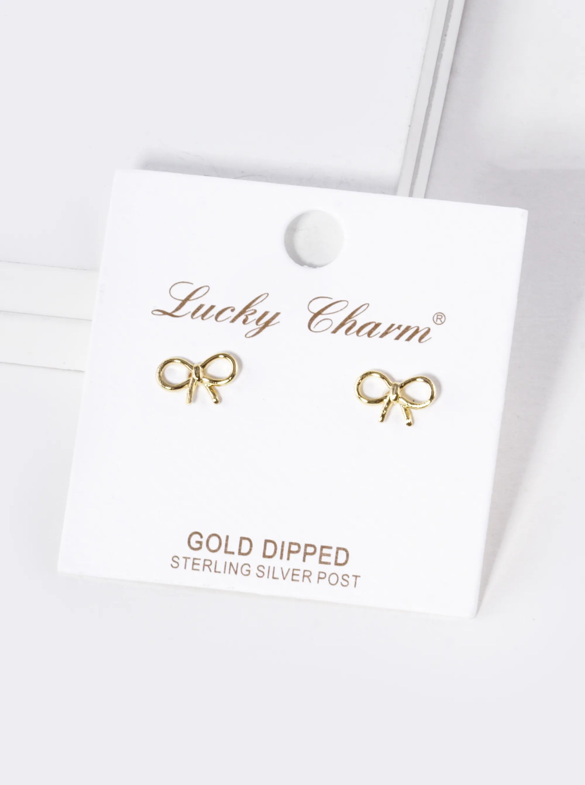 18K Gold Dipped 6mm Brass Wire Ribbon Bow Stud Earrings