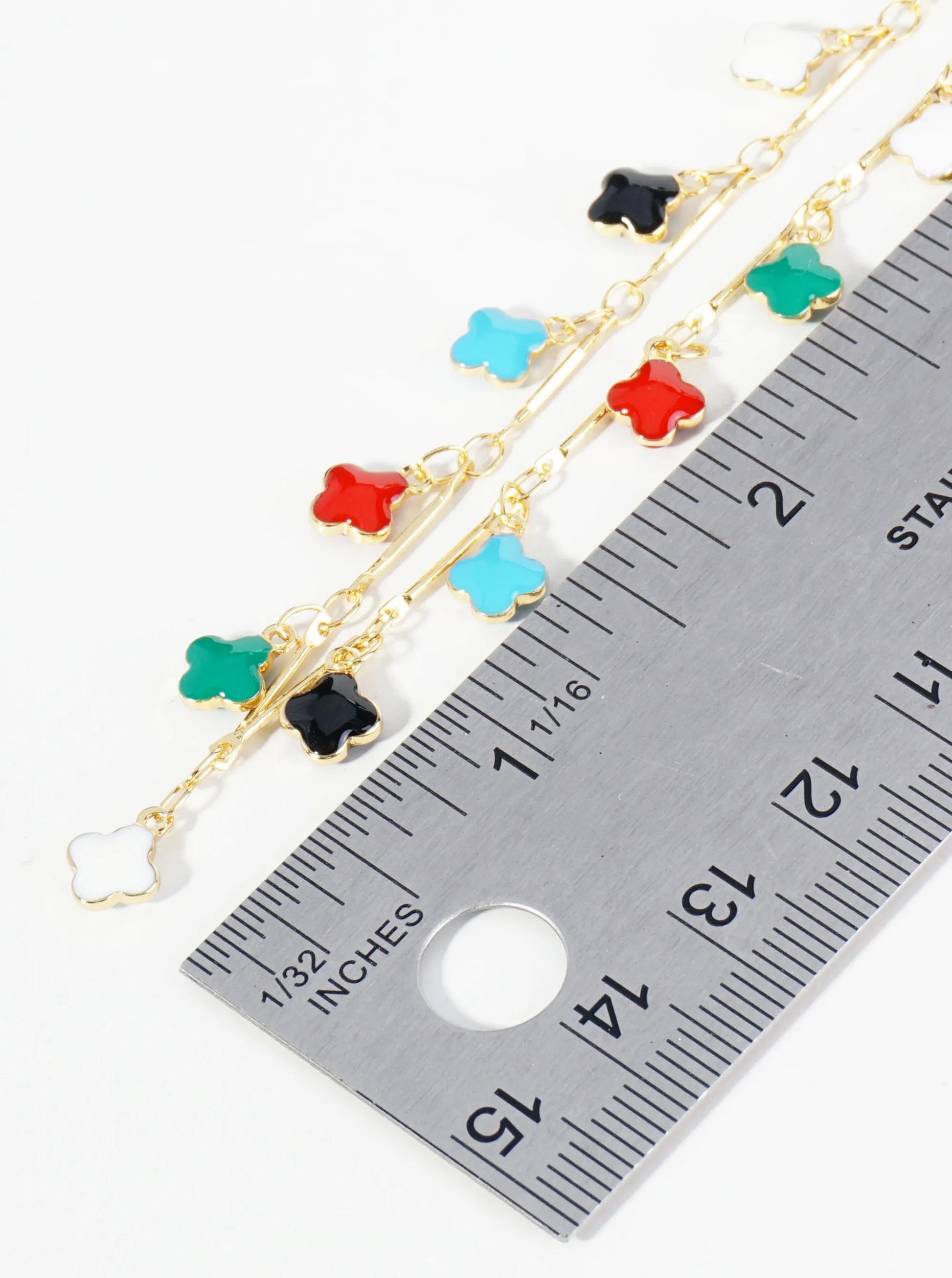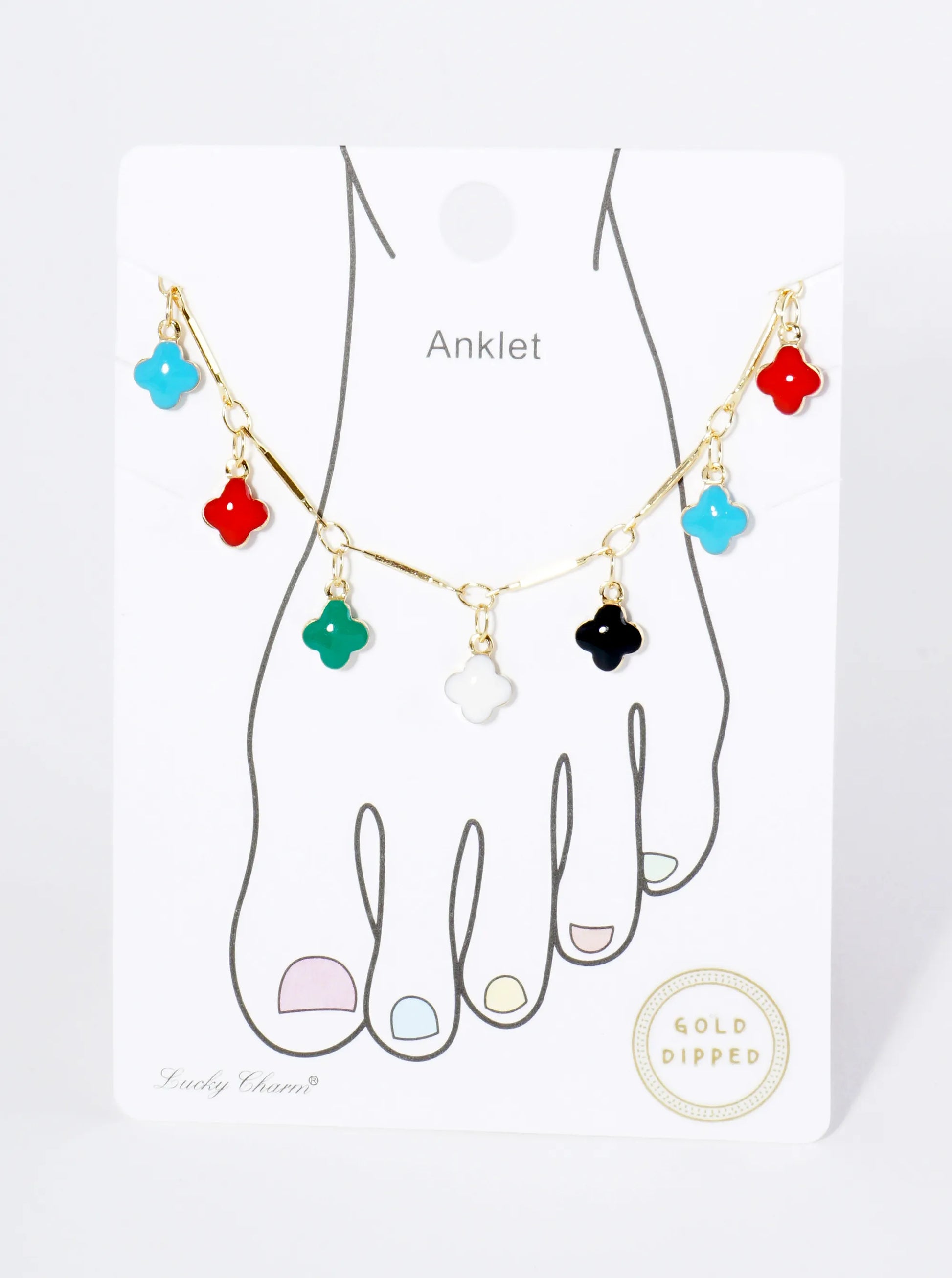 18K Gold Dipped 6mm Enamel Quatrefoil Charms Brass Chain Anklet