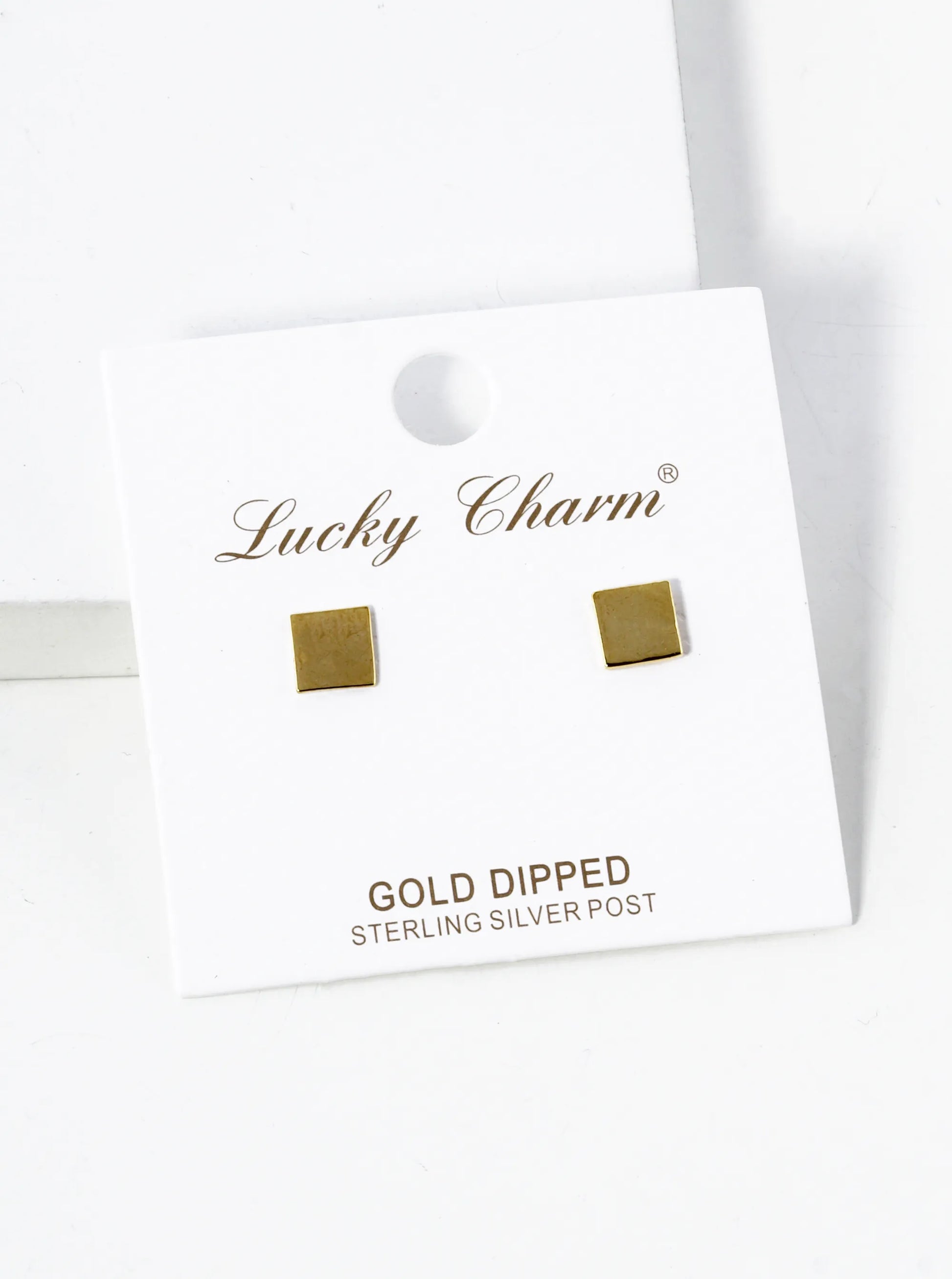 18K Gold Dipped 6mm Flat Square Stud Earrings