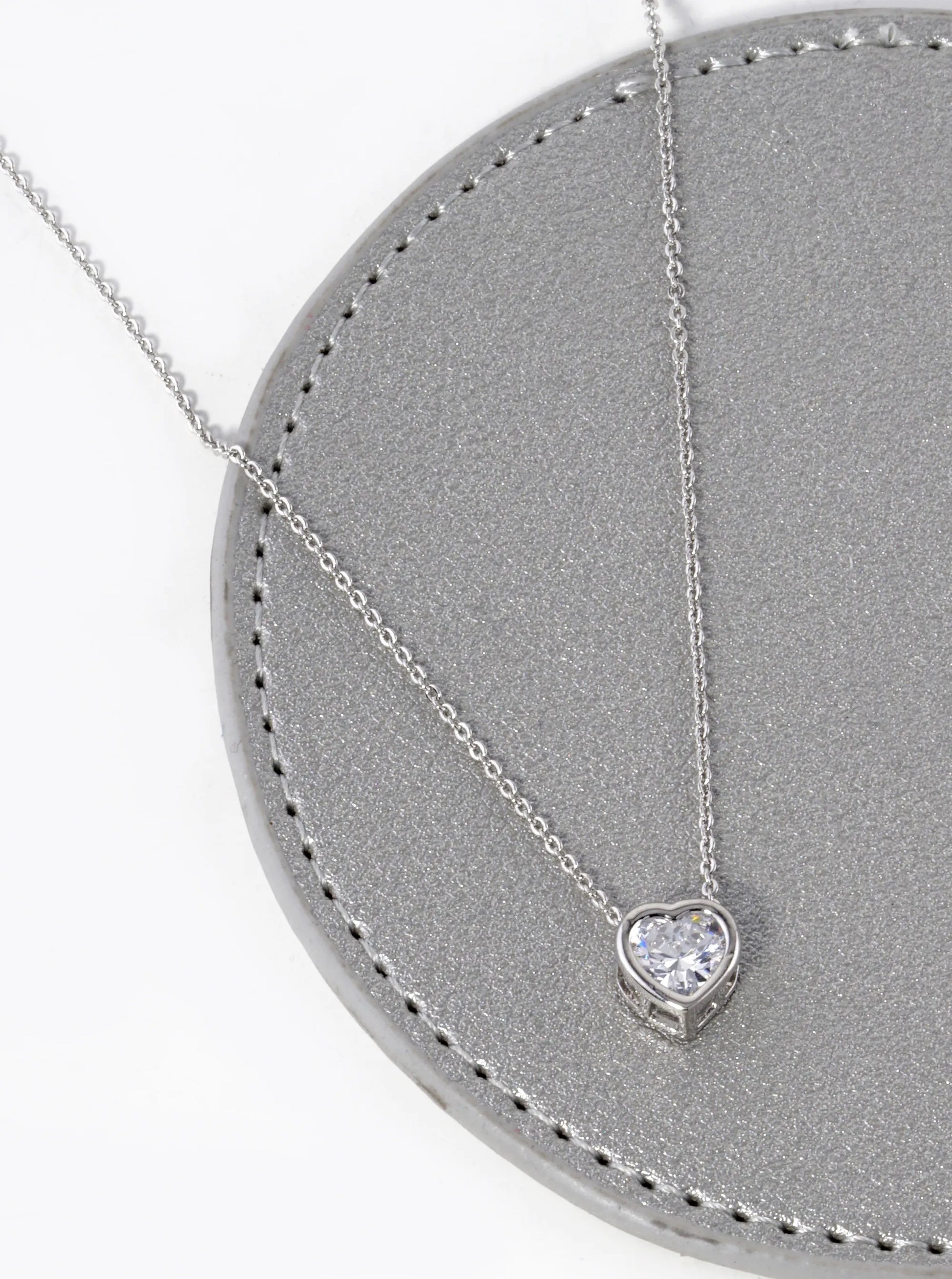 18K Gold Dipped 8mm CZ Stone Heart Pendant Necklace