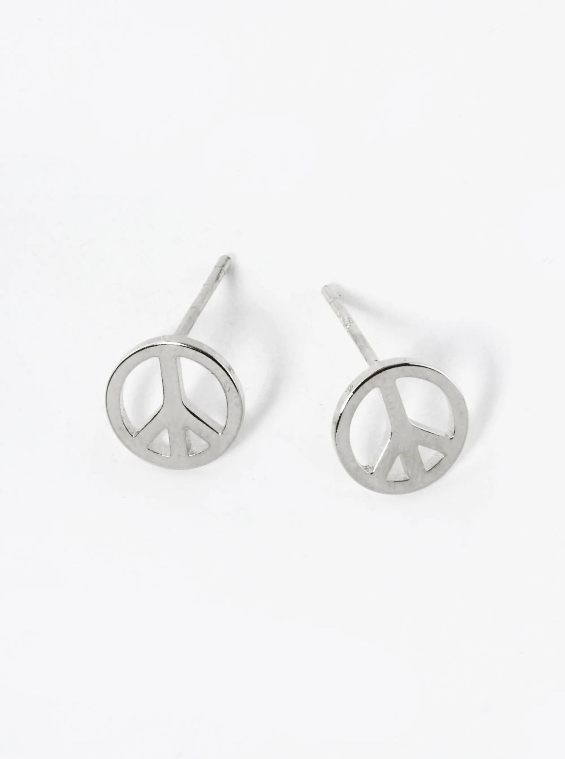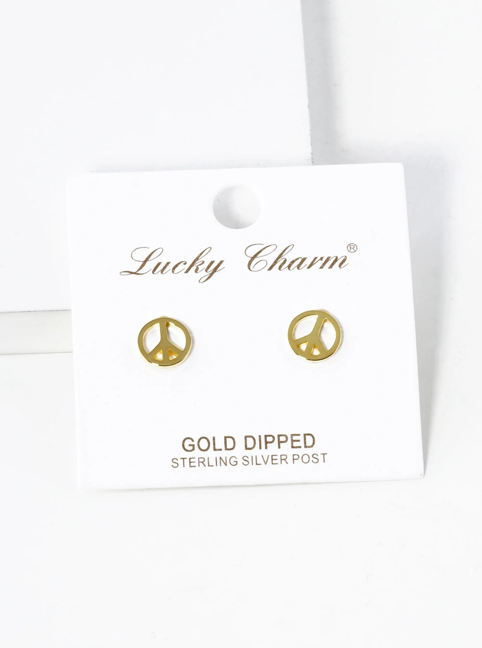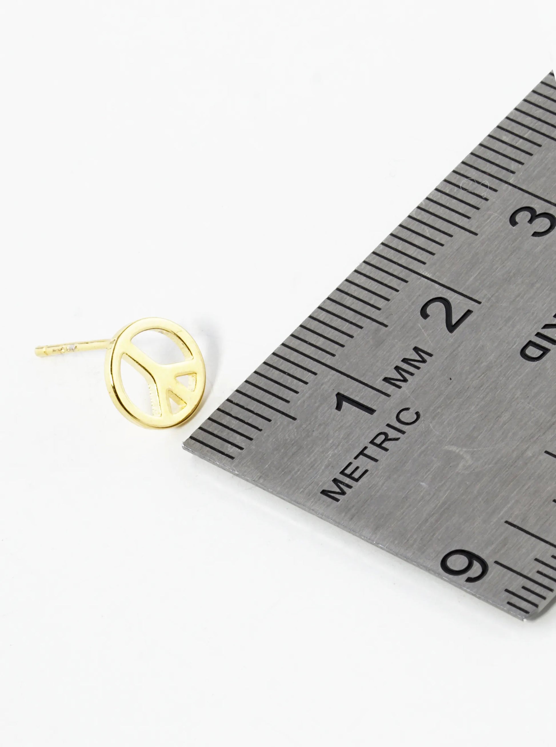 18K Gold Dipped 8mm Dainty Peace Sign Brass Stud Earrings
