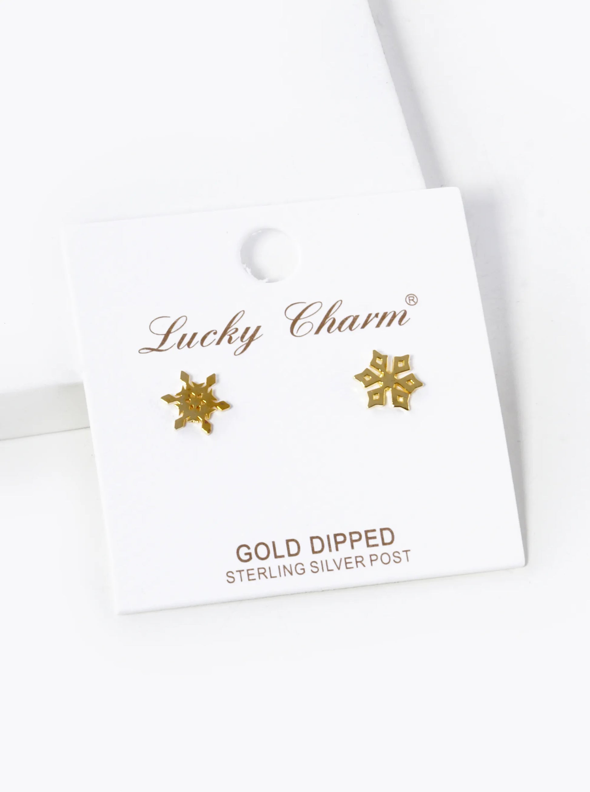 18K Gold Dipped 8mm Flat Brass Snowflake Stud Earrings