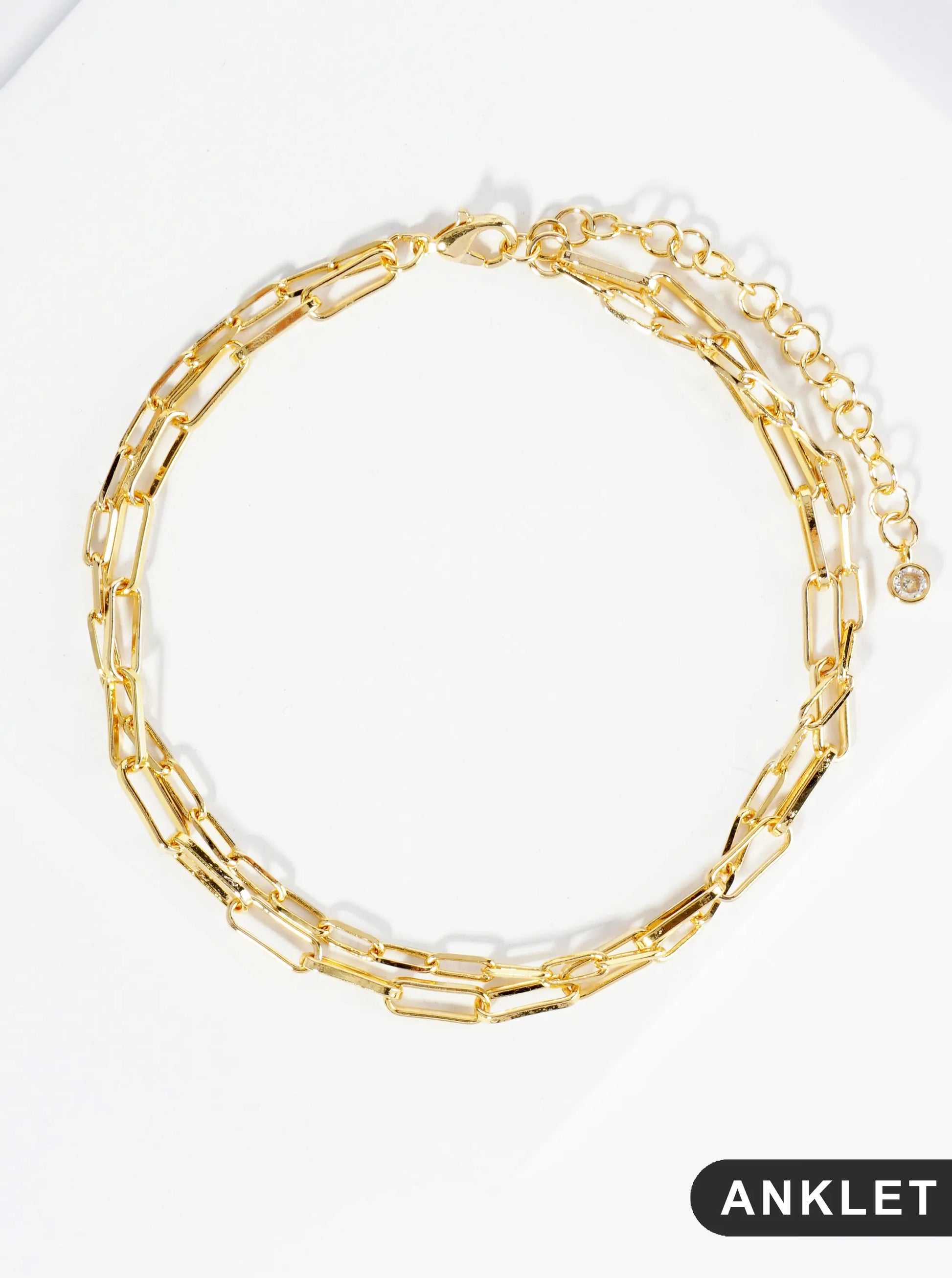18K Gold Dipped 9mm 6mm Brass Layered Link Chain Anklet