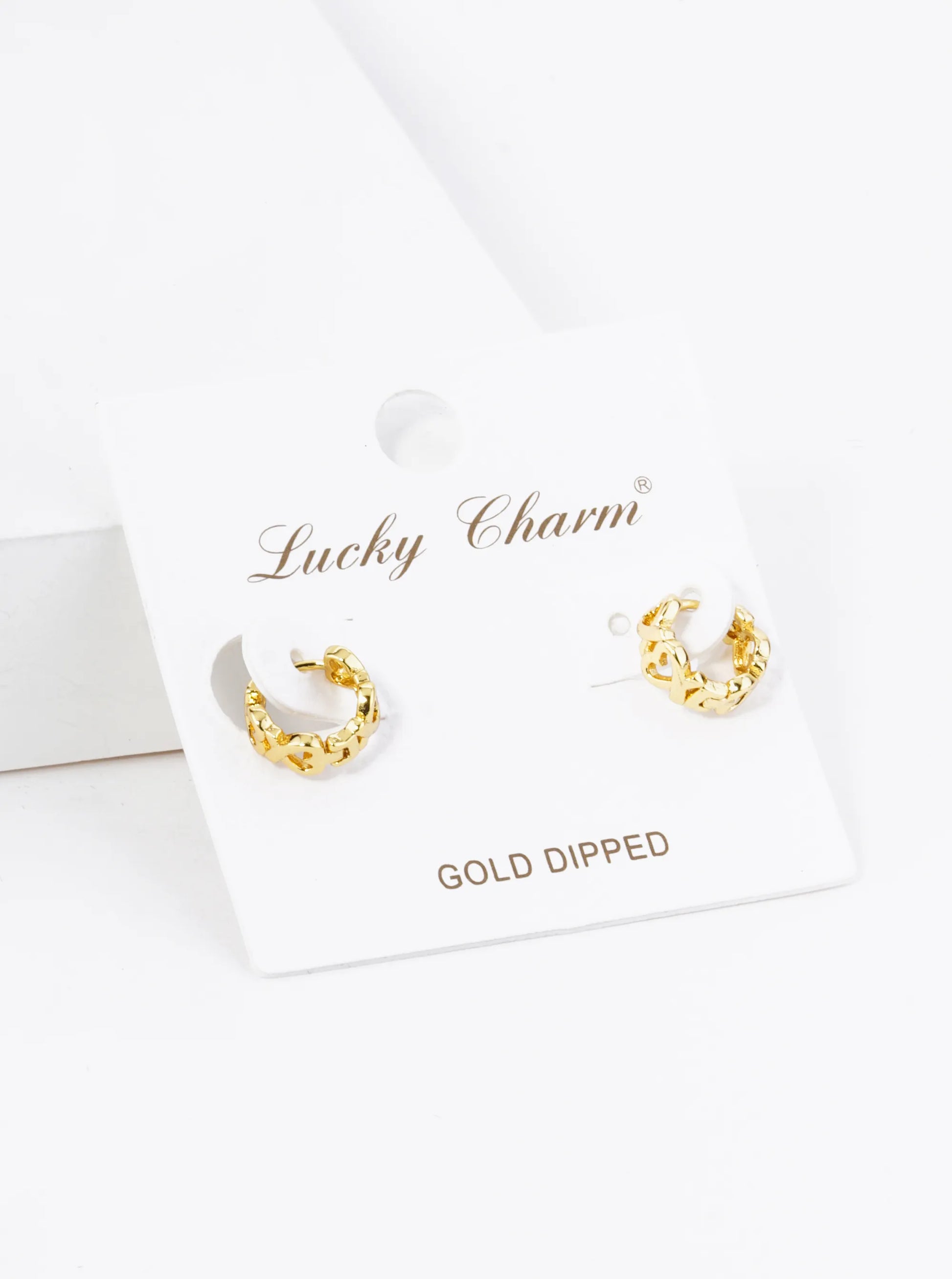 18K Gold Dipped 9mm Brass Heart Huggie Hoop Earrings