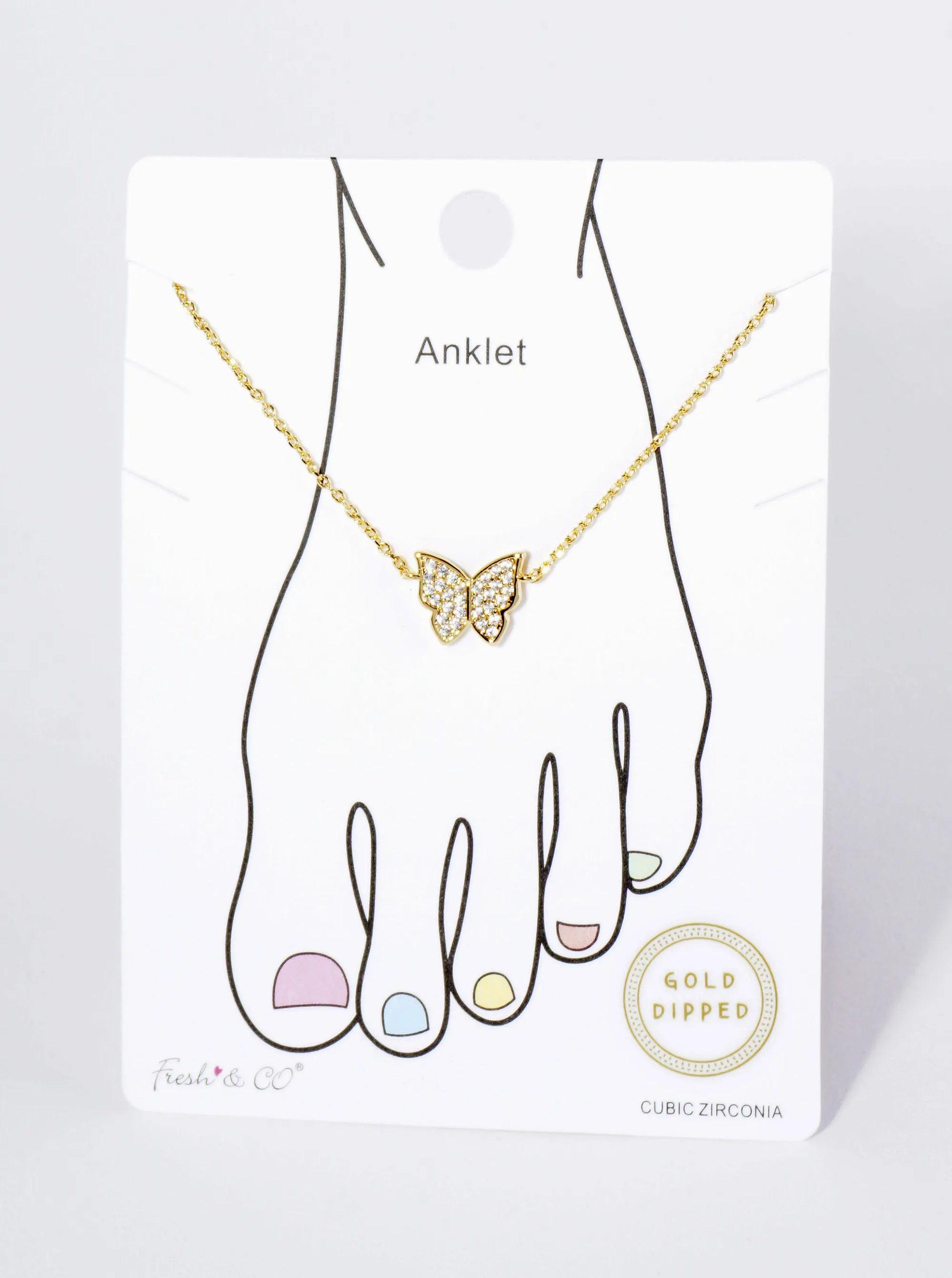 18K Gold Dipped 9mm Cubic Zirconia Pave Butterfly Brass Chain Anklet