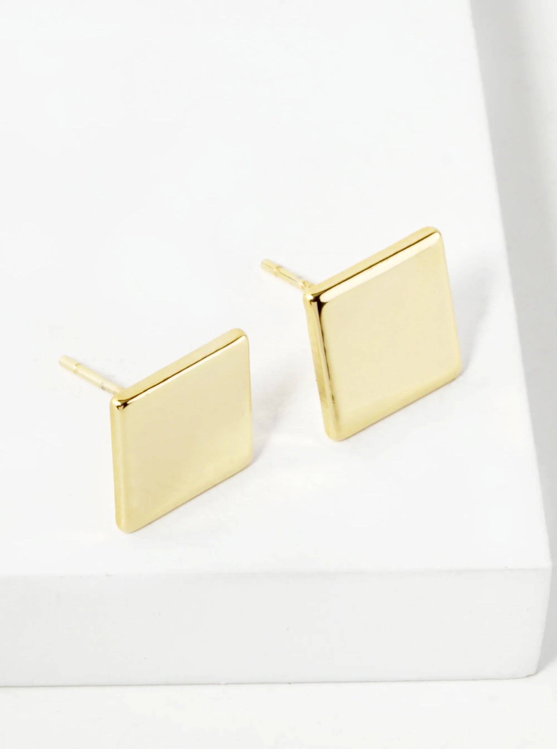 18K Gold Dipped 9mm Flat Square Stud Earrings