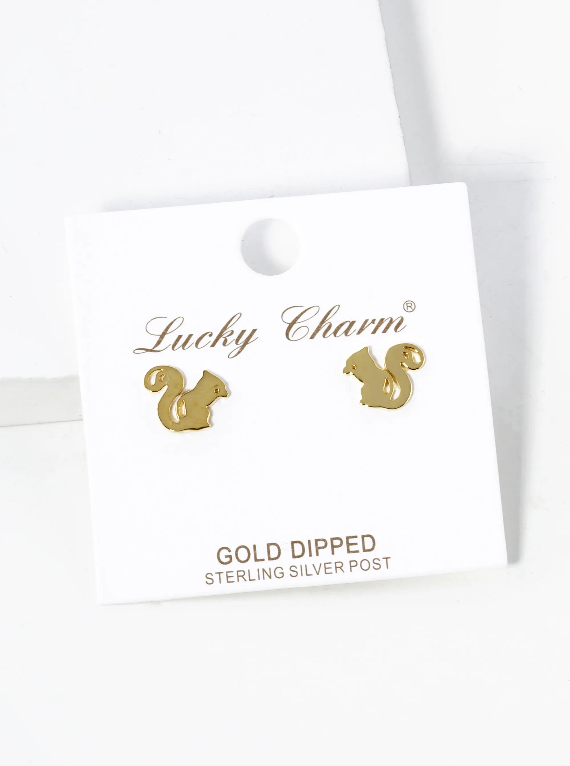 18K Gold Dipped 9mm Flat Squirrel Stud Earrings