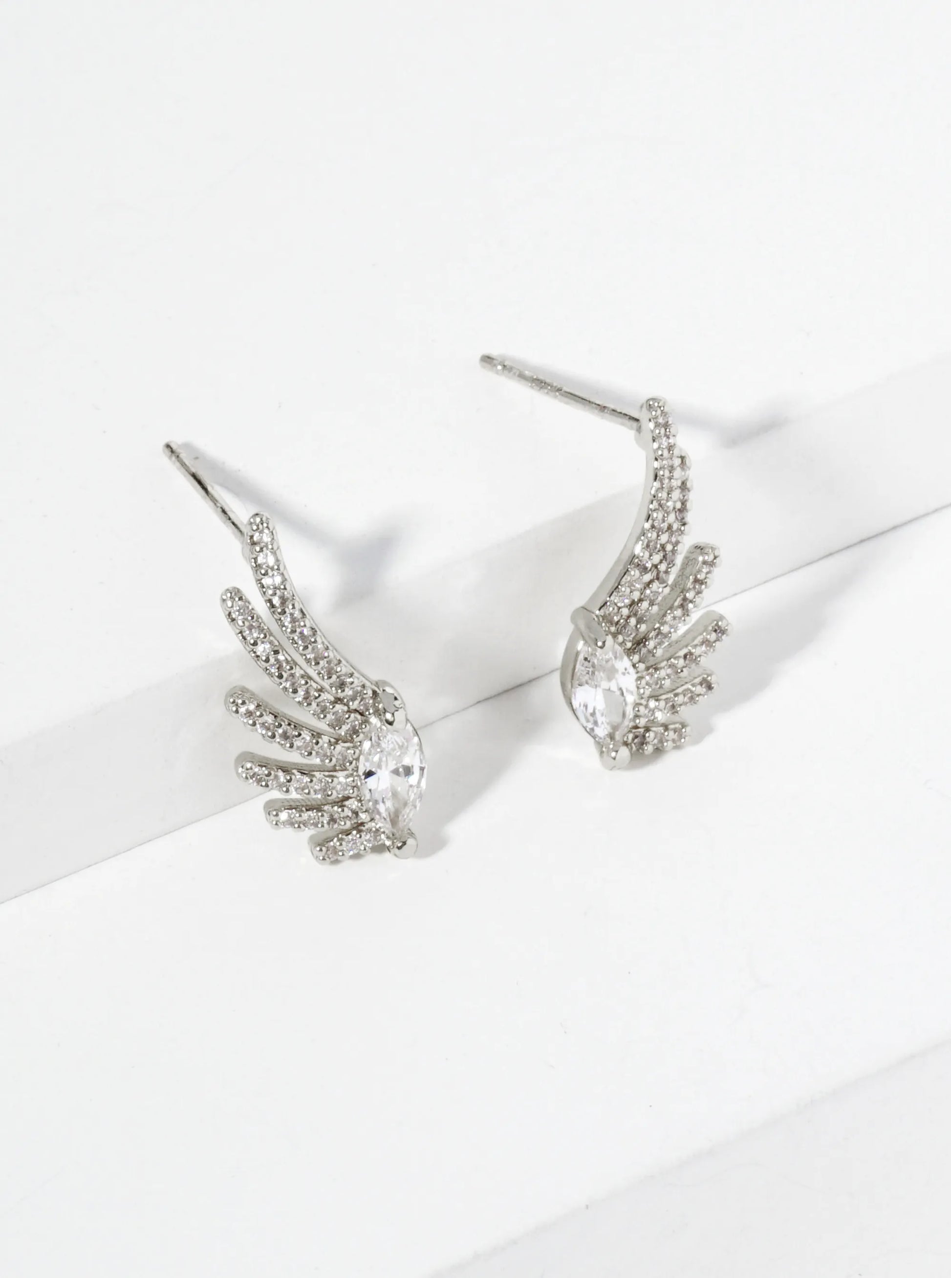 18K Gold Dipped Angel Wings Cubic Zirconia Stud Earrings
