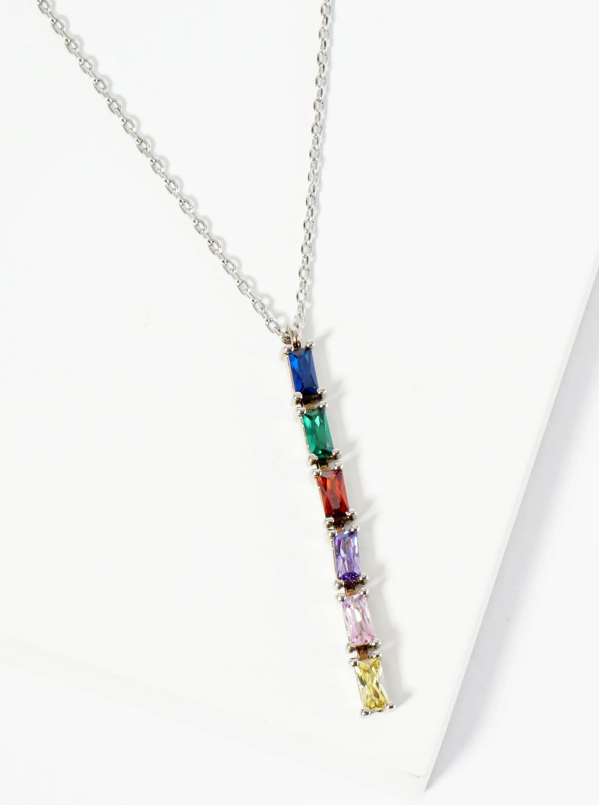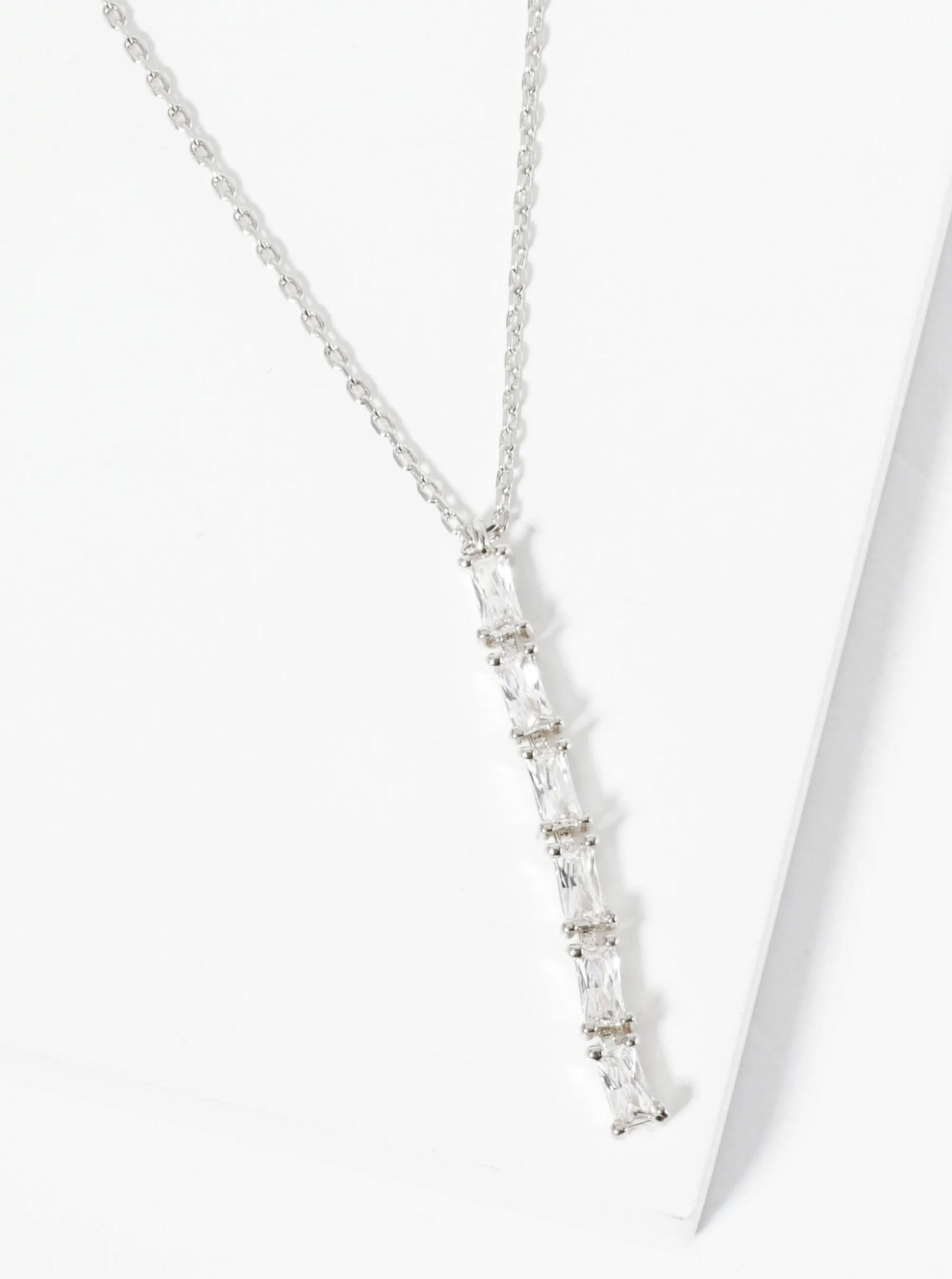 18K Gold Dipped Baguette CZ Bar Drop Pendant Necklace