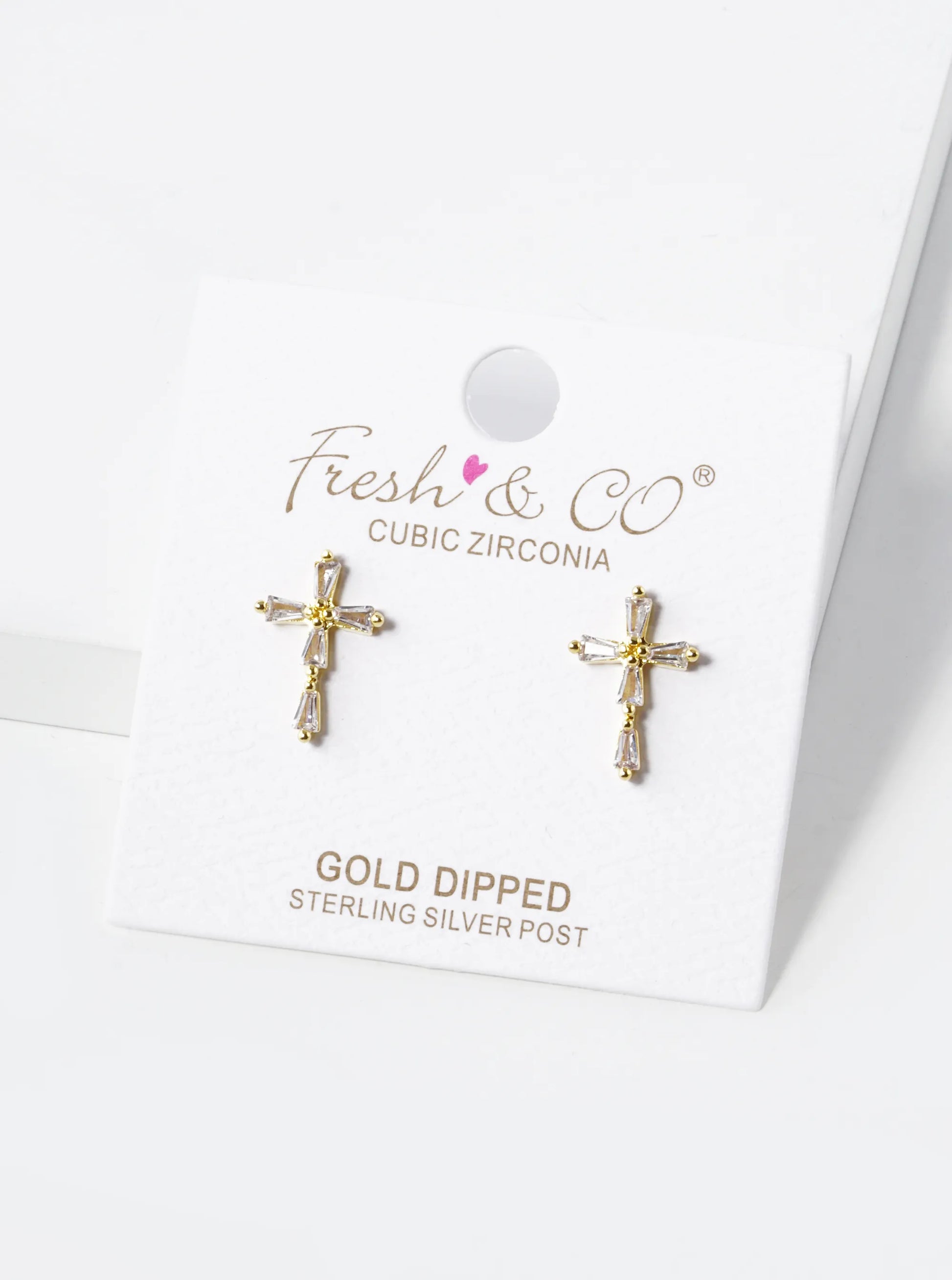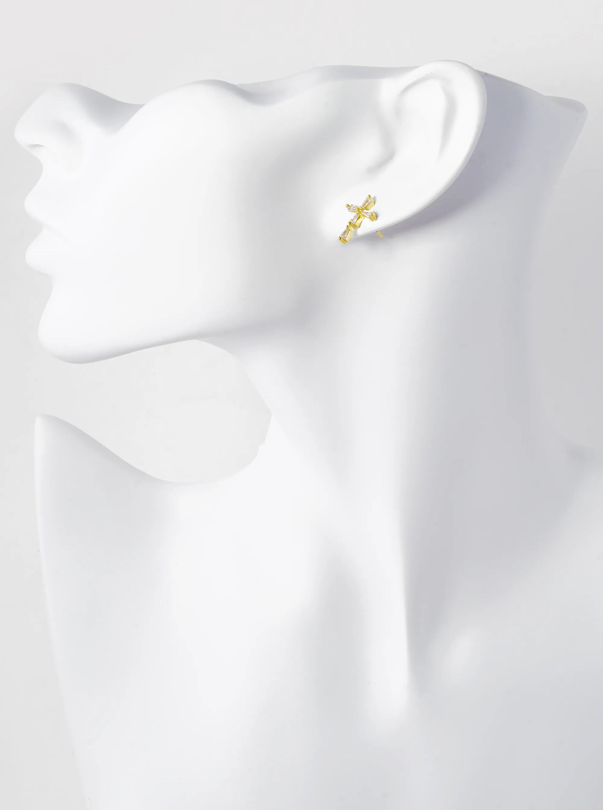 18K Gold Dipped Baguette CZ Cross Stud Earrings