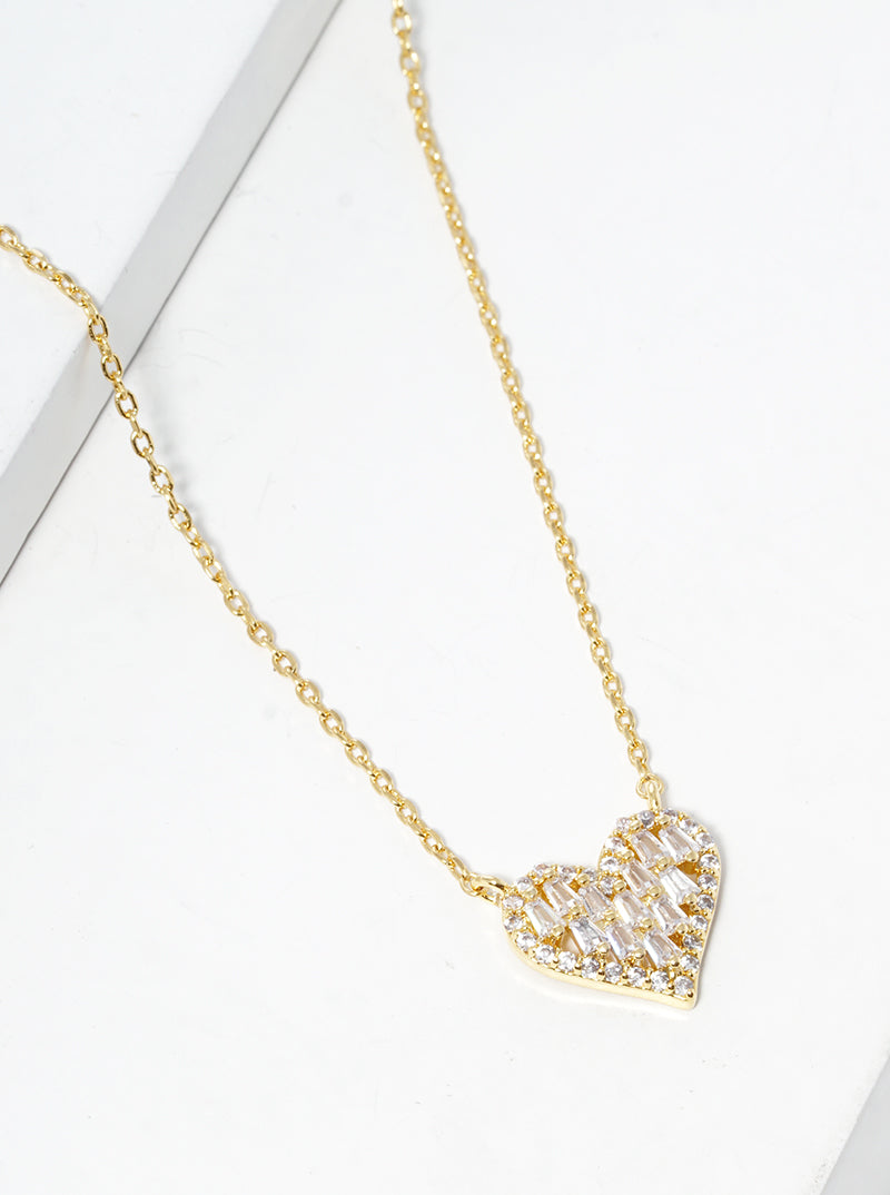 18k Gold Dipped Baguette CZ Pave Heart Pendant Necklace
