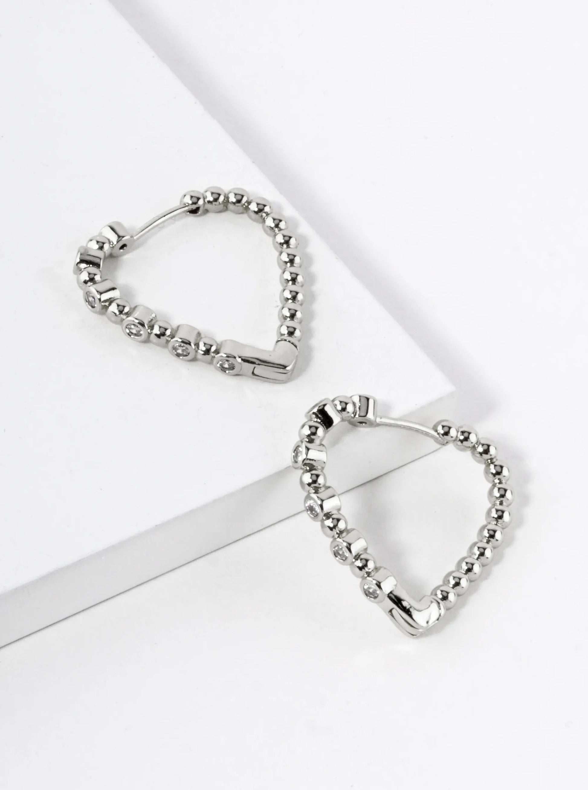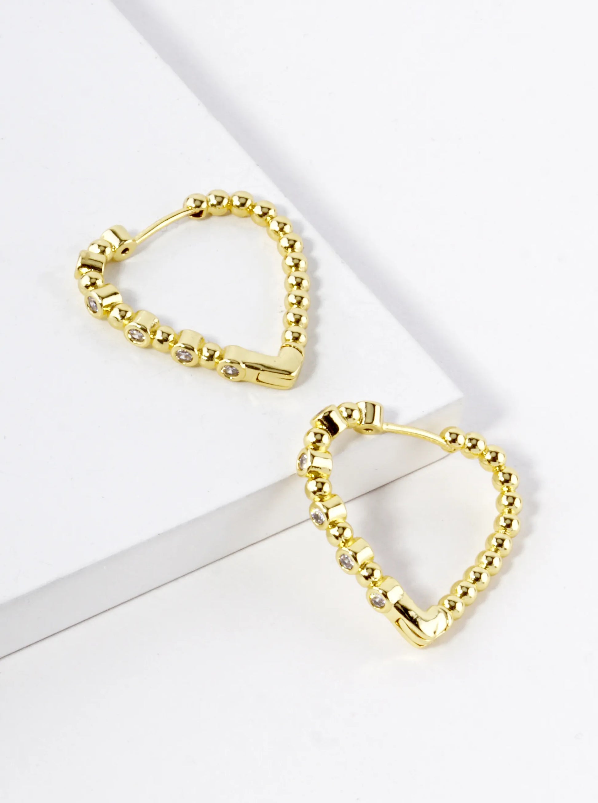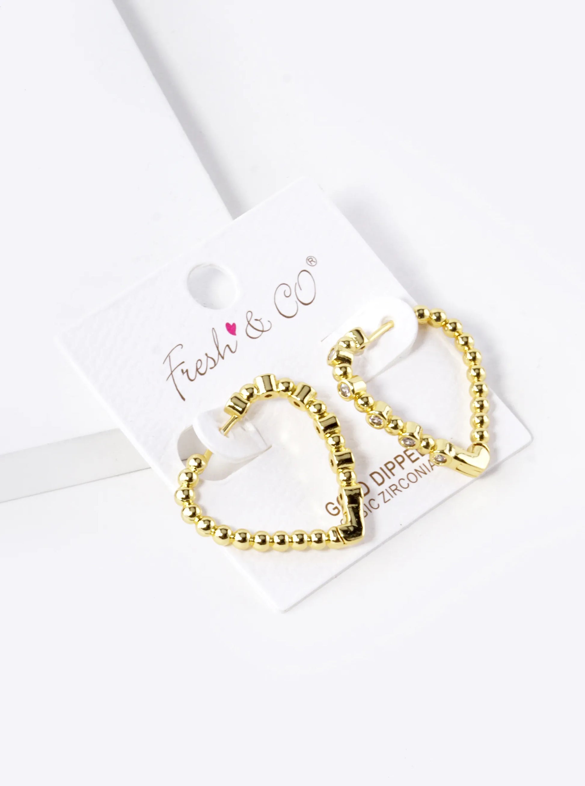 18K Gold Dipped Ball Textured CZ Stone 25mm Heart Hoop Earrings