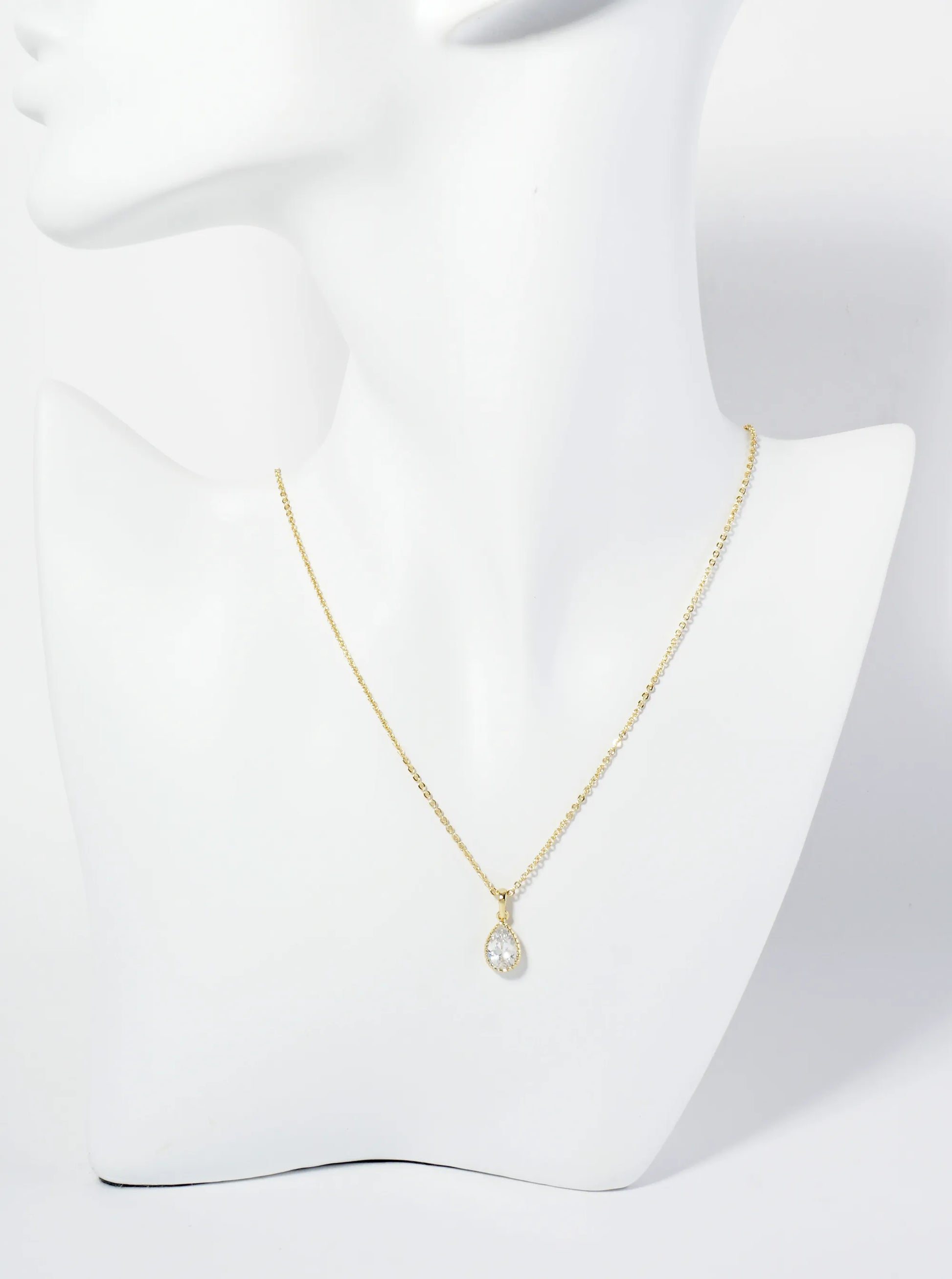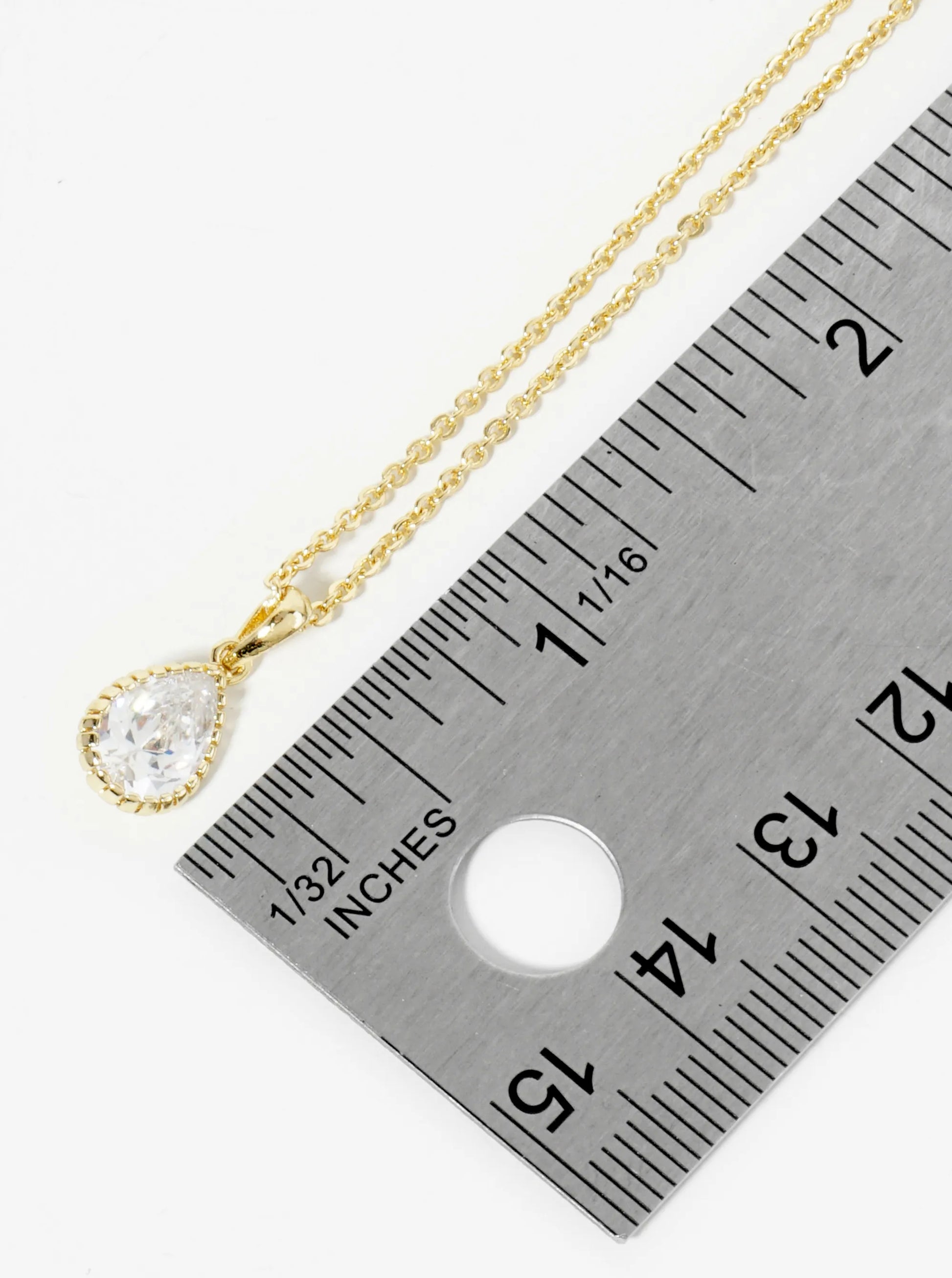 18K Gold Dipped Ball Textured Encased In Brass 10mm CZ Teardrop Stone Pendant Necklace