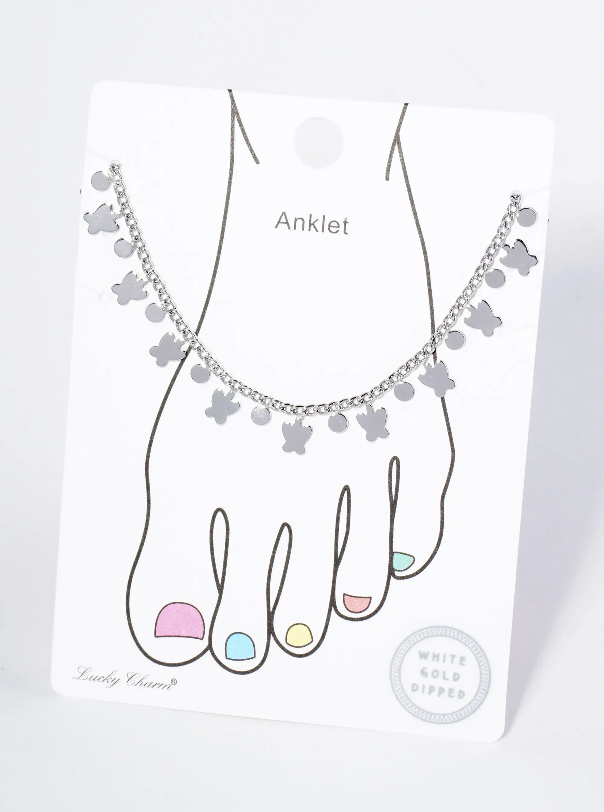 18K Gold Dipped Brass Butterfly Charm Tassel Anklet
