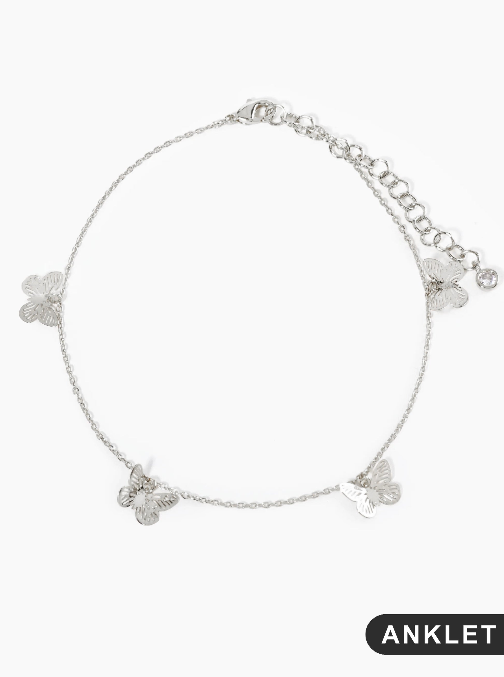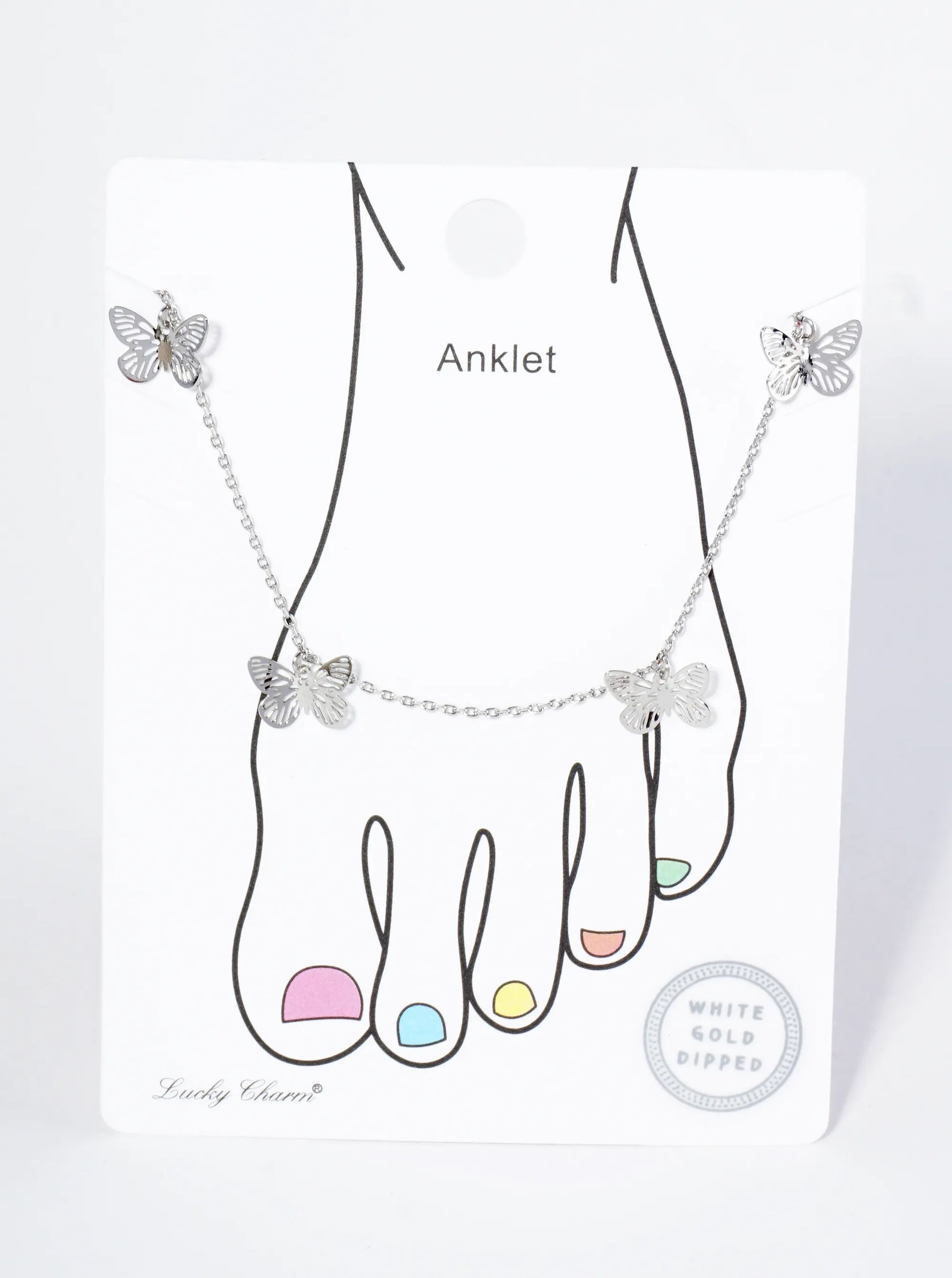 18K Gold Dipped Brass Filigree Small Butterflies Chain Anklet