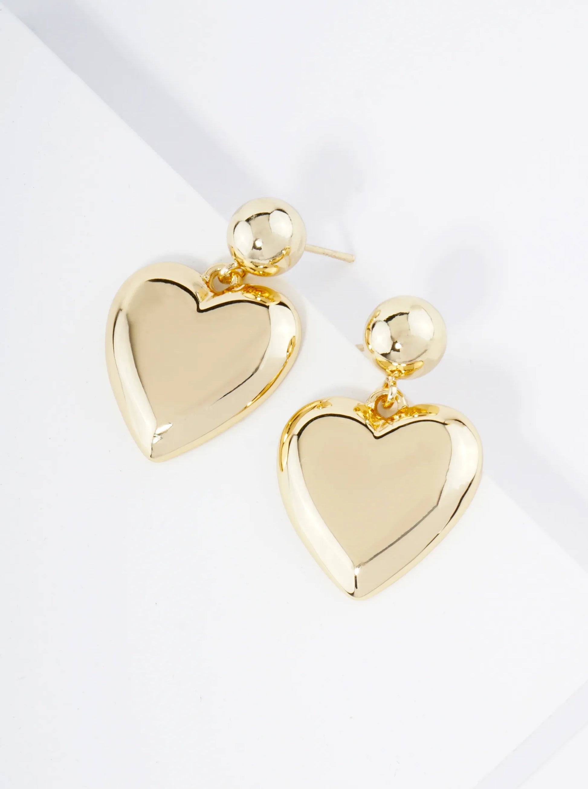 18K Gold Dipped Brass Heart Drop Dangle Post Earrings