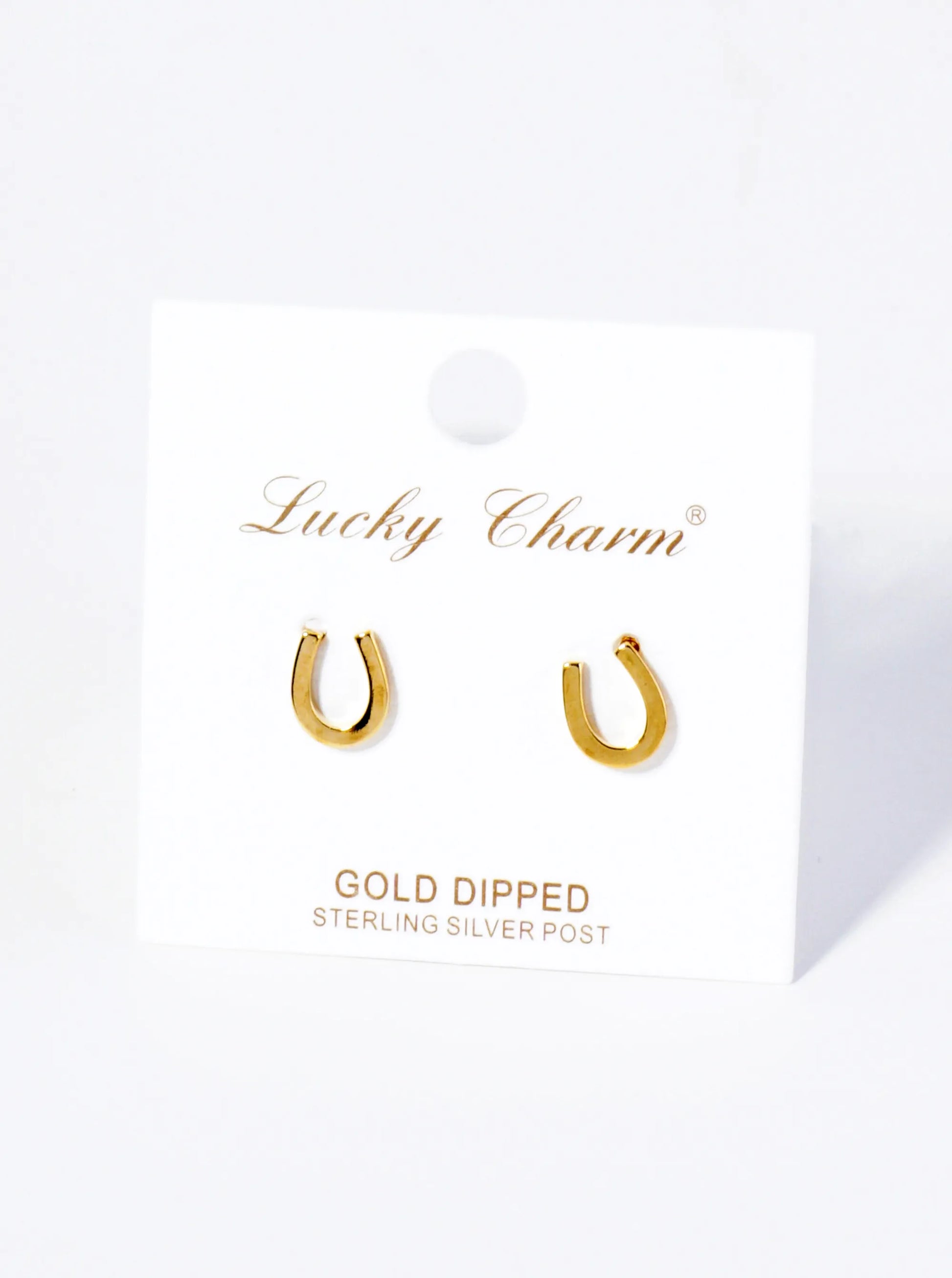 18K Gold Dipped Brass Horseshoe Stud Earrings