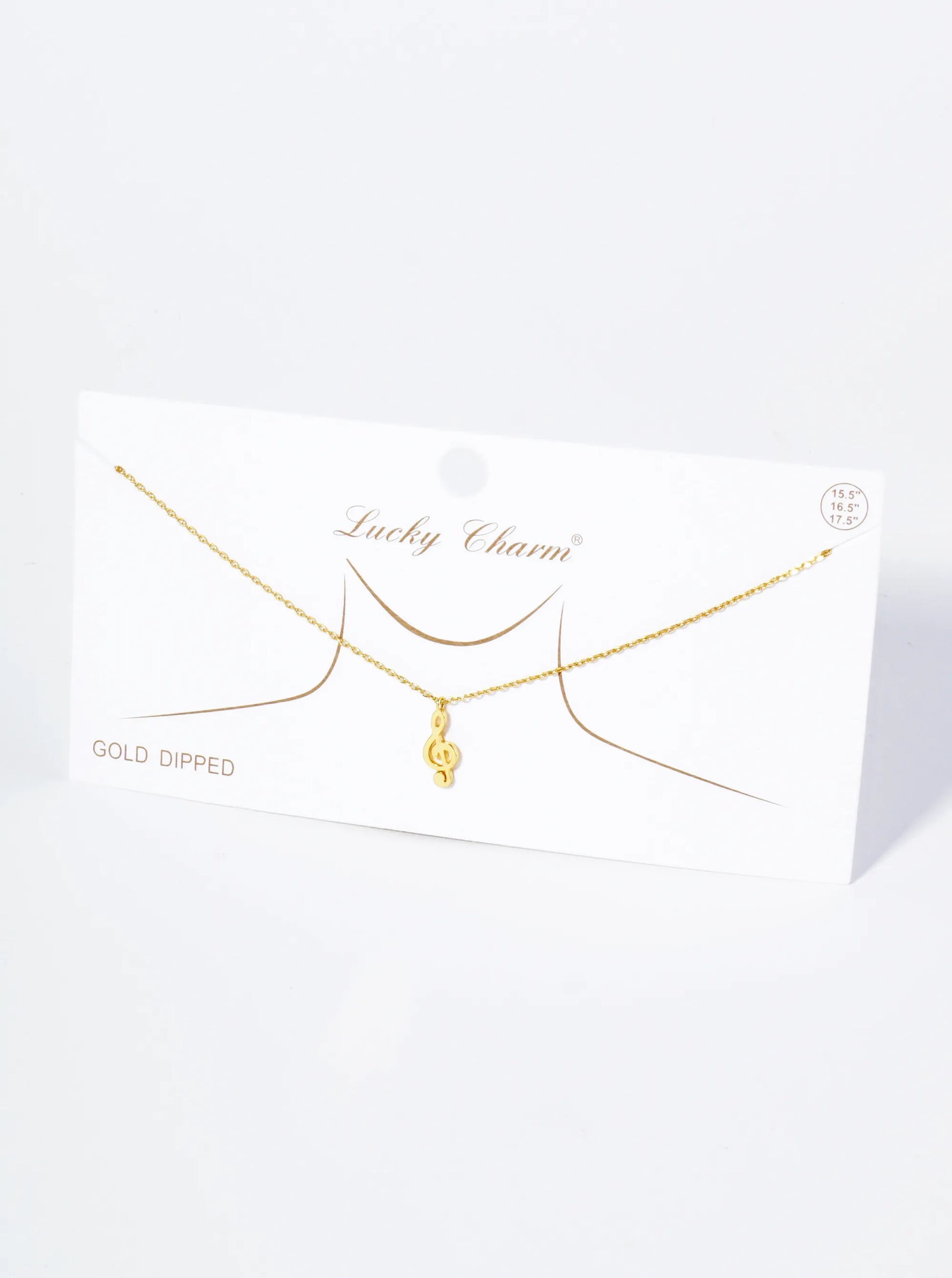 18K Gold Dipped Brass Musical Note Pendant Necklace