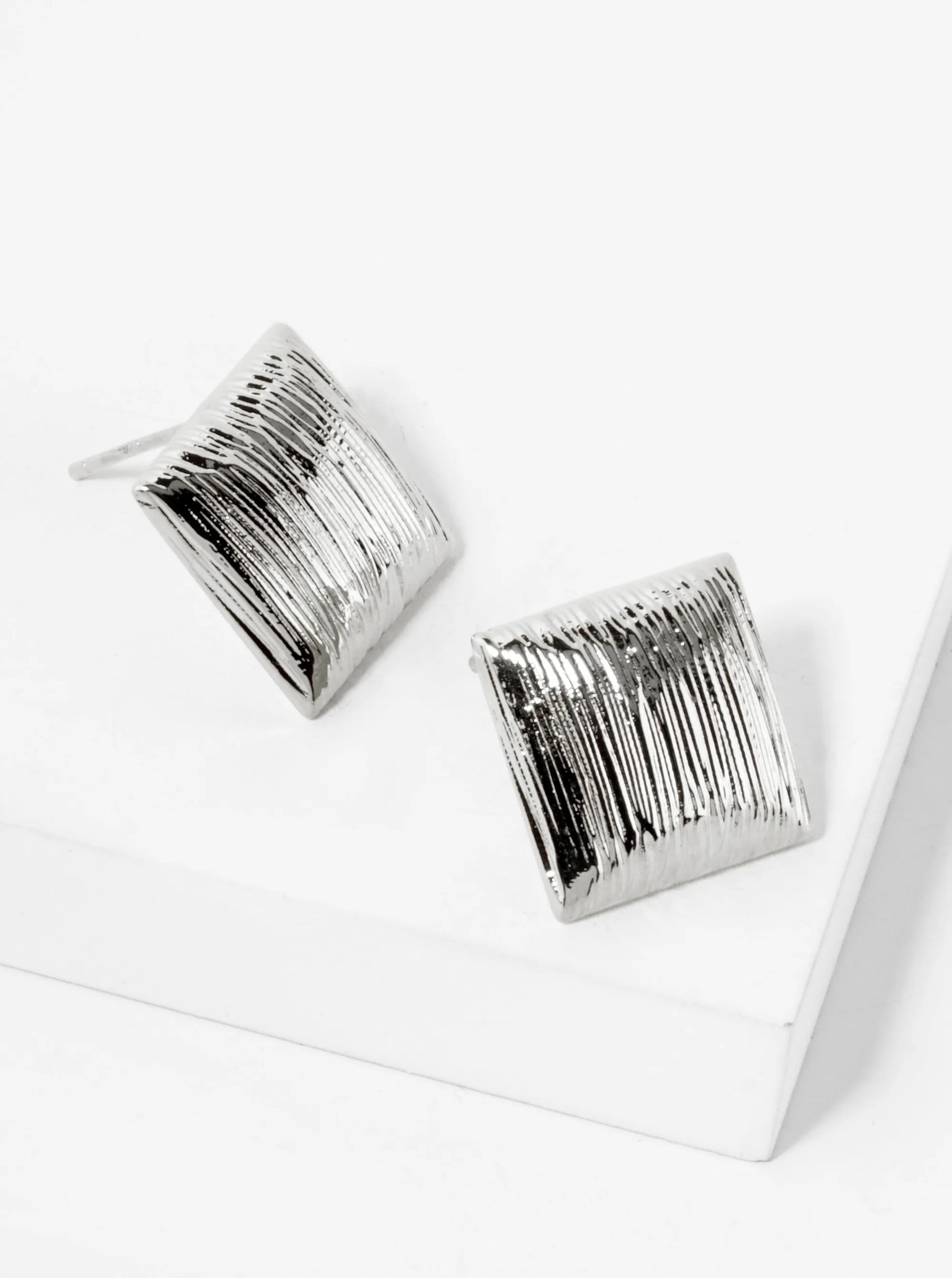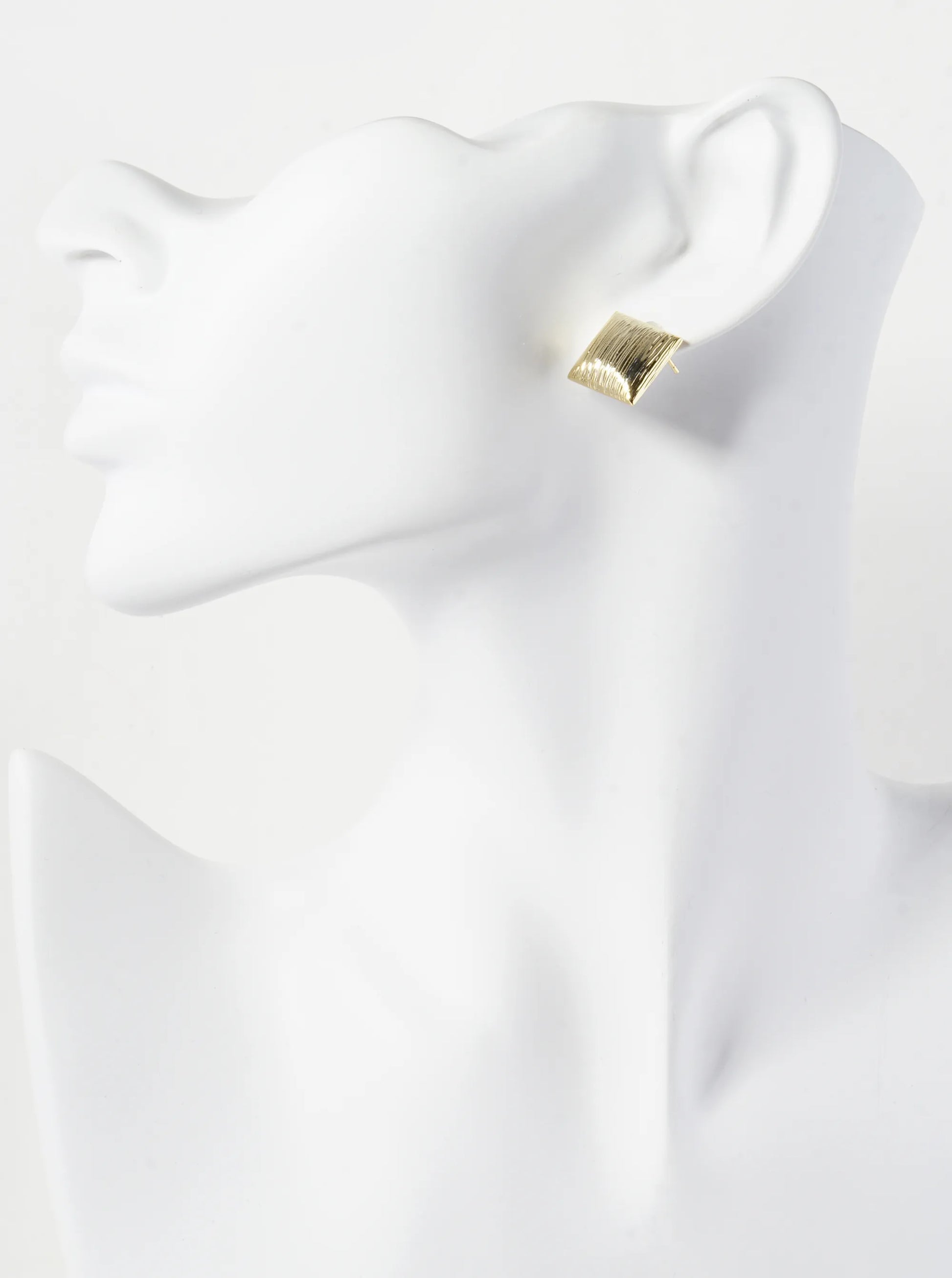 18K Gold Dipped Brushed Brass 13mm Puffy Square Stud Earrings