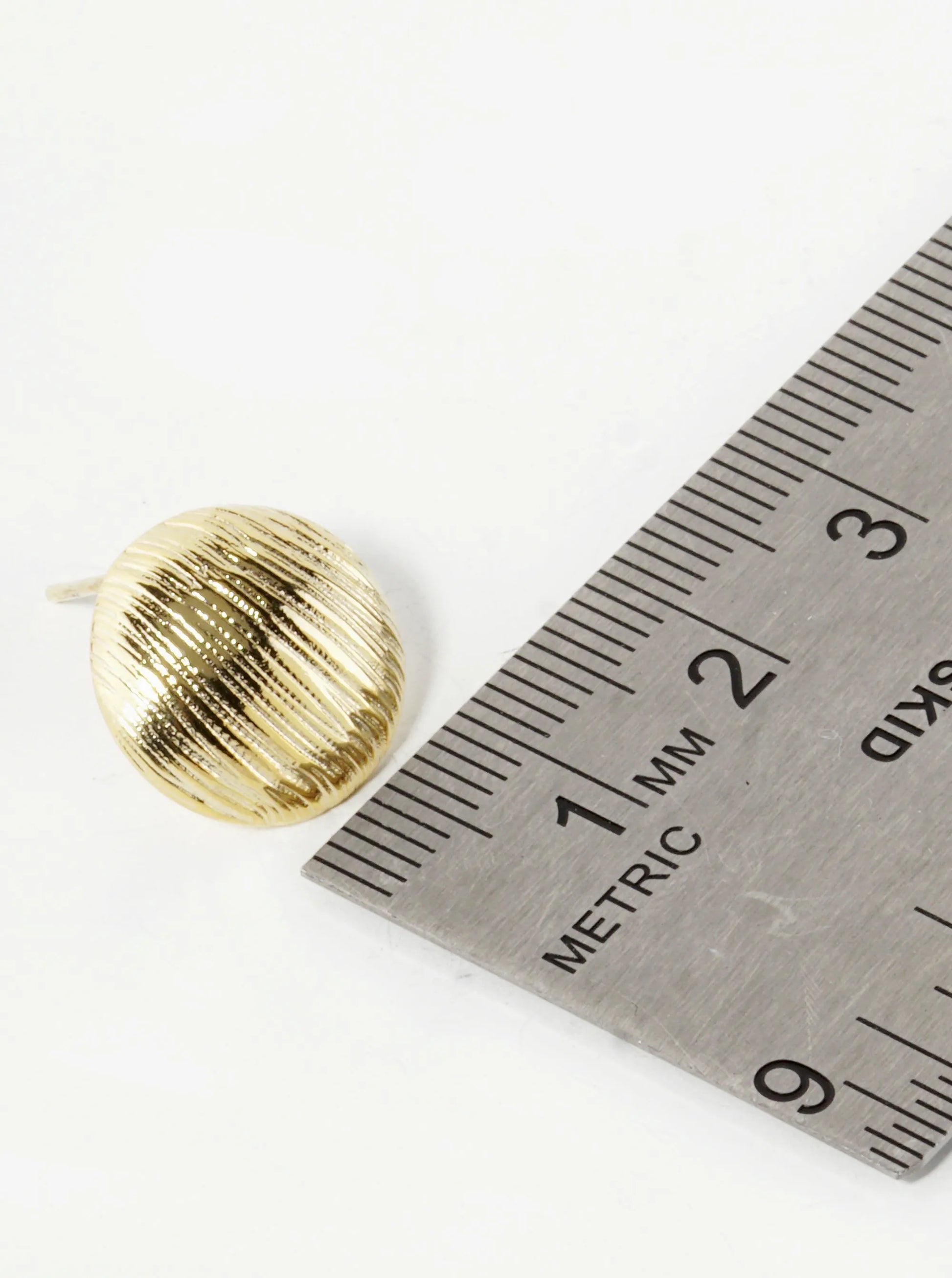 18K Gold Dipped Brushed Brass 14mm Puffy Round Stud Earrings