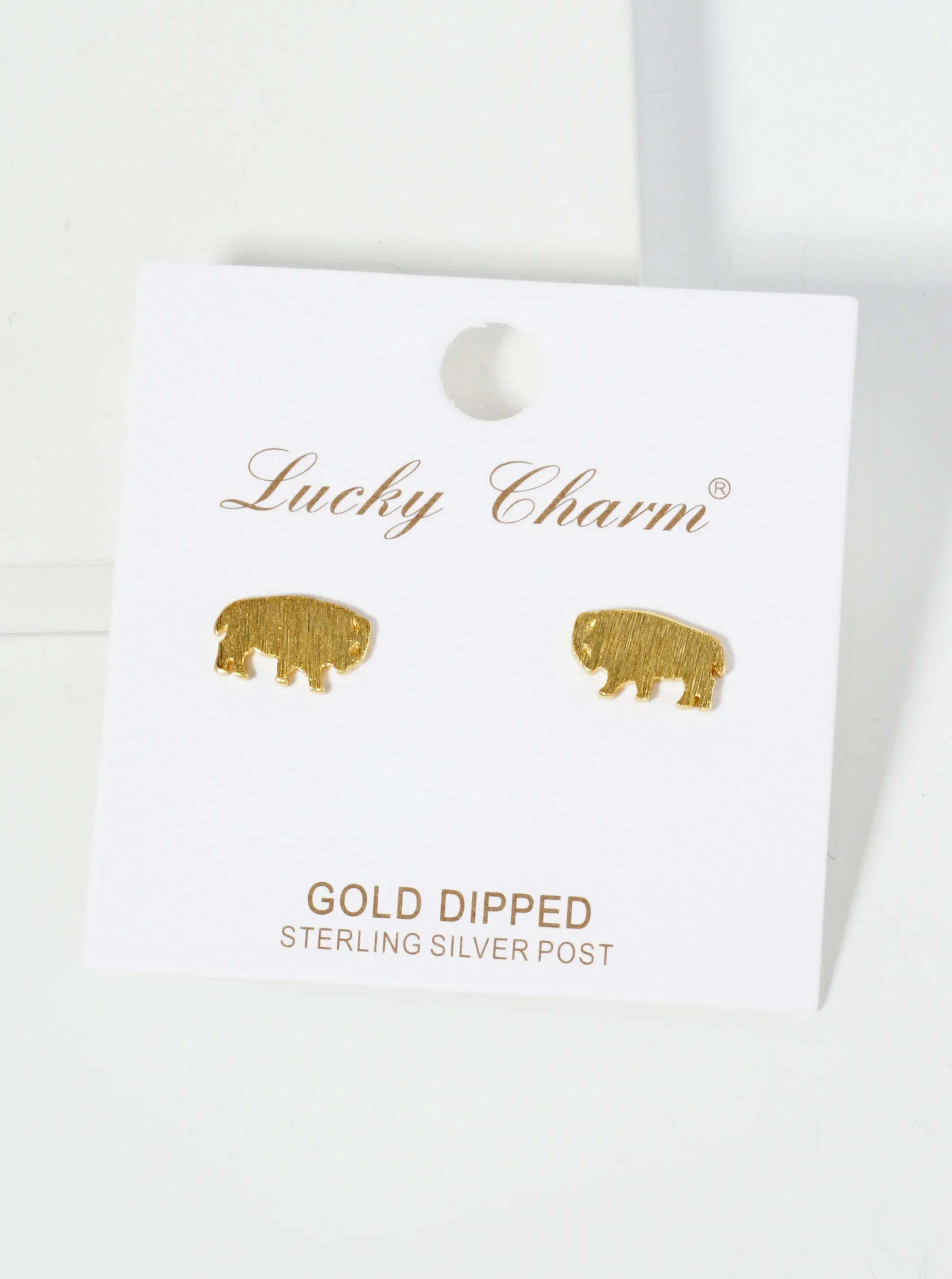 18K Gold Dipped Brushed Brass Buffalo Stud Earrings