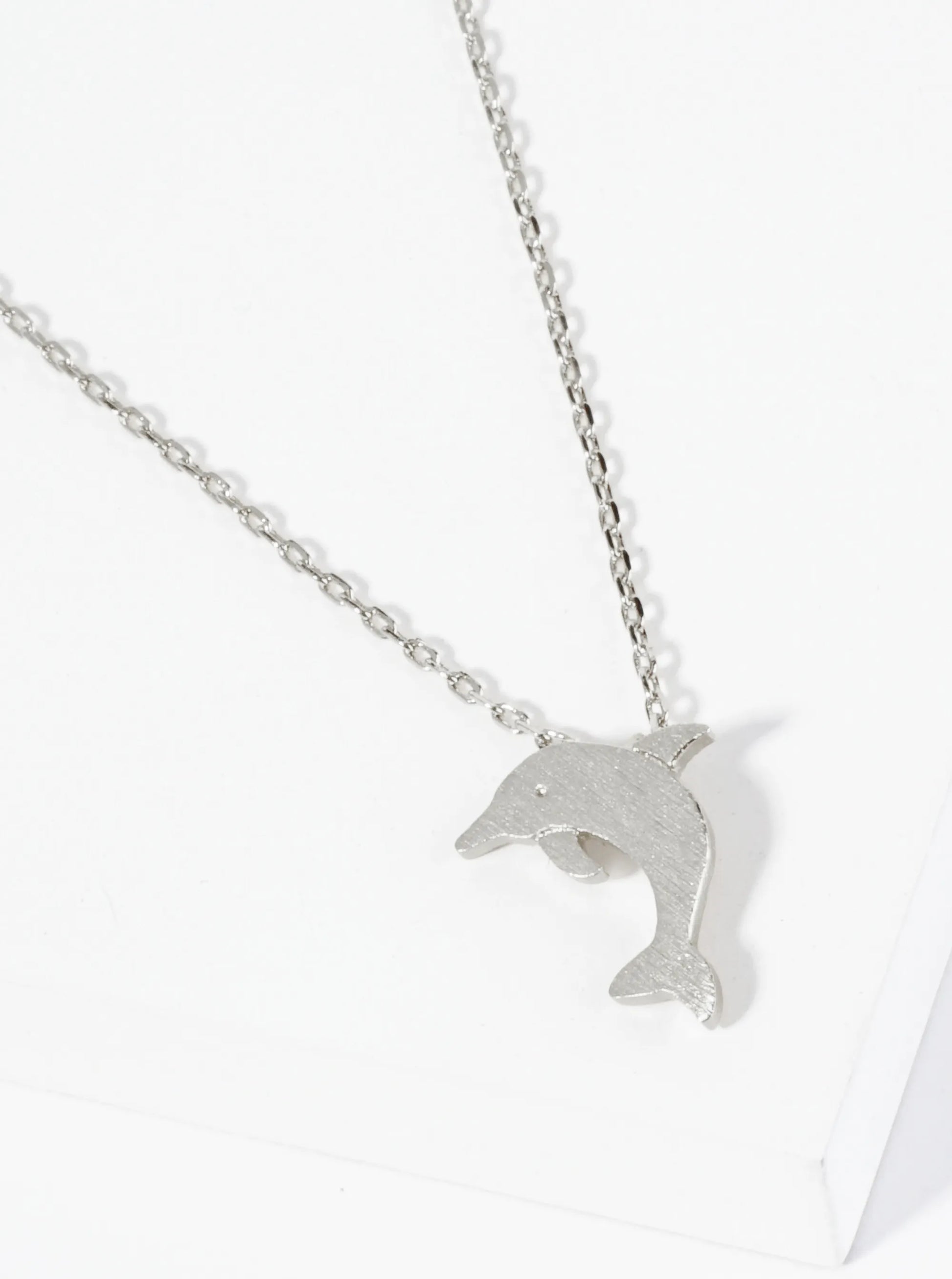 18K Gold Dipped Brushed Brass Dolphin Pendant Necklace