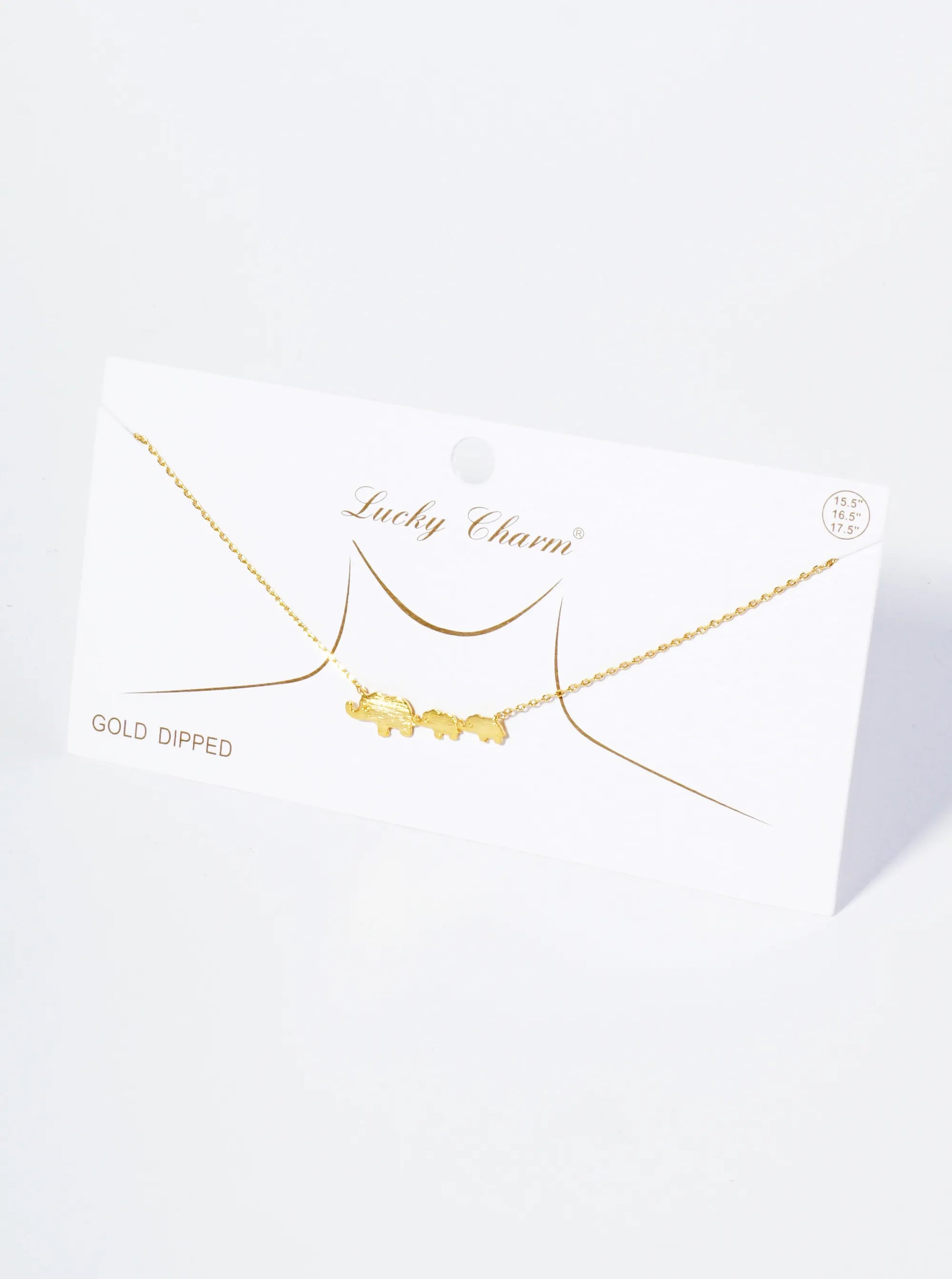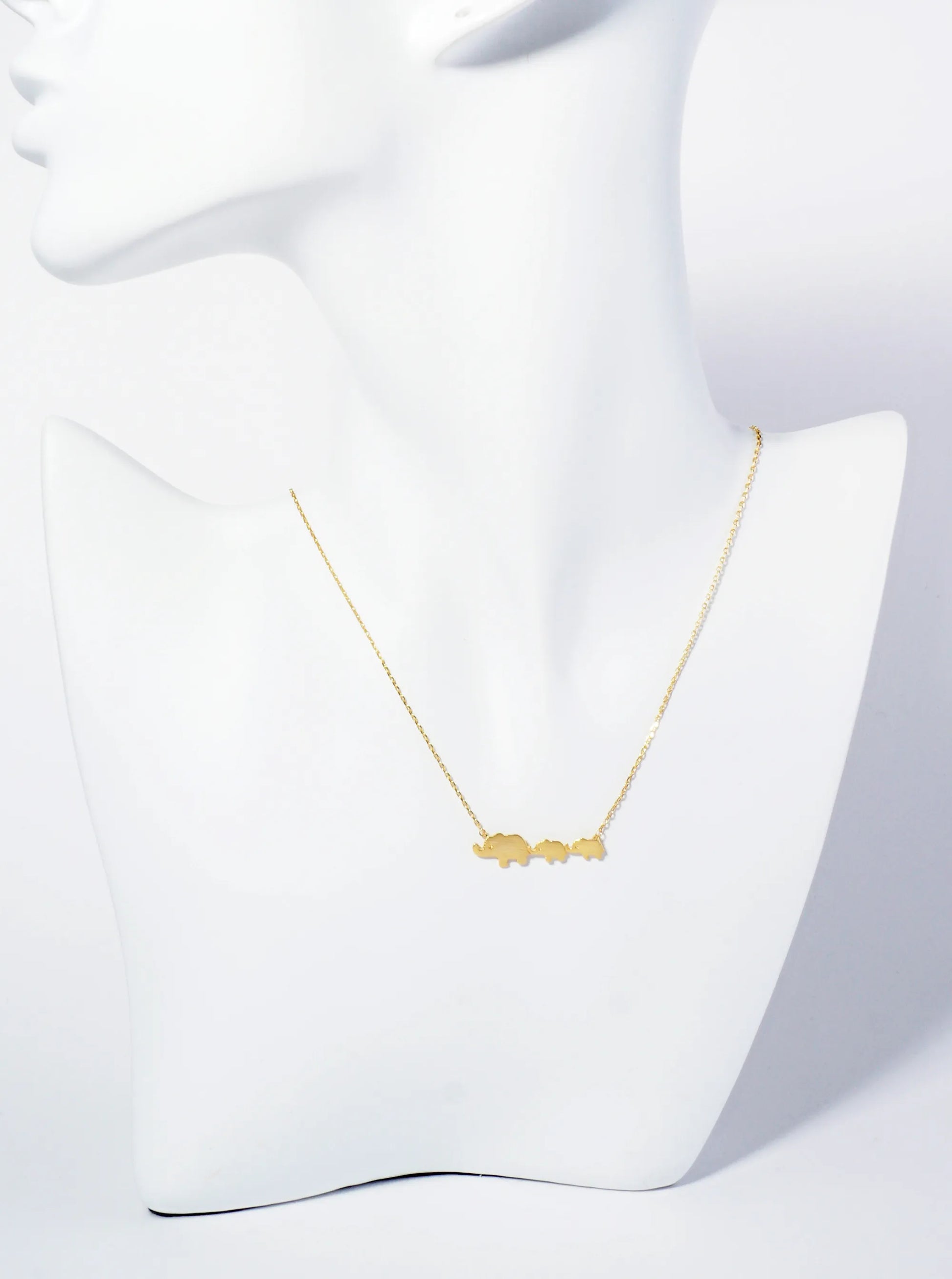 18K Gold Dipped Brushed Brass Elephant Family Pendant Necklace