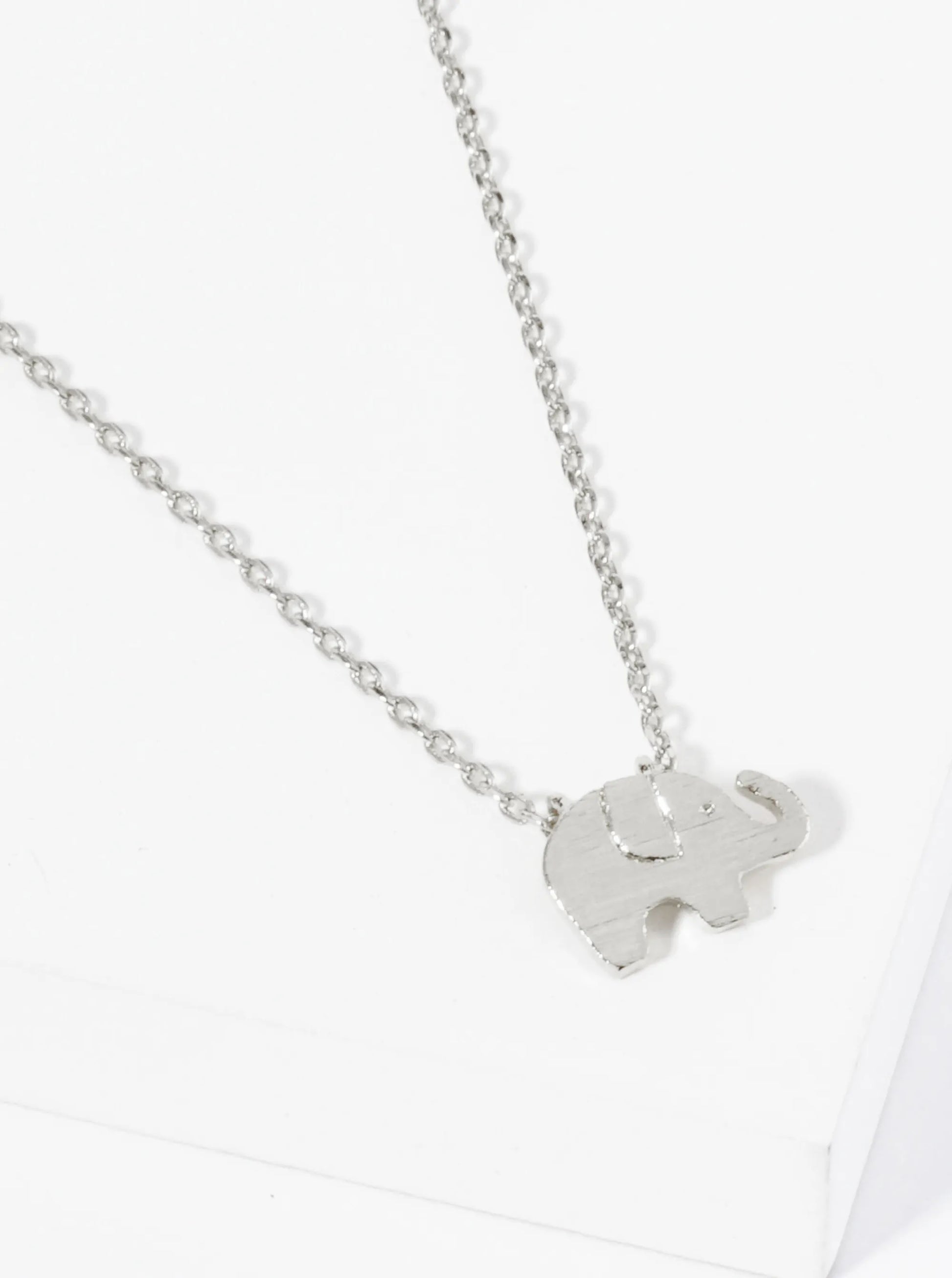 18K Gold Dipped Brushed Brass Elephant Pendant Necklace