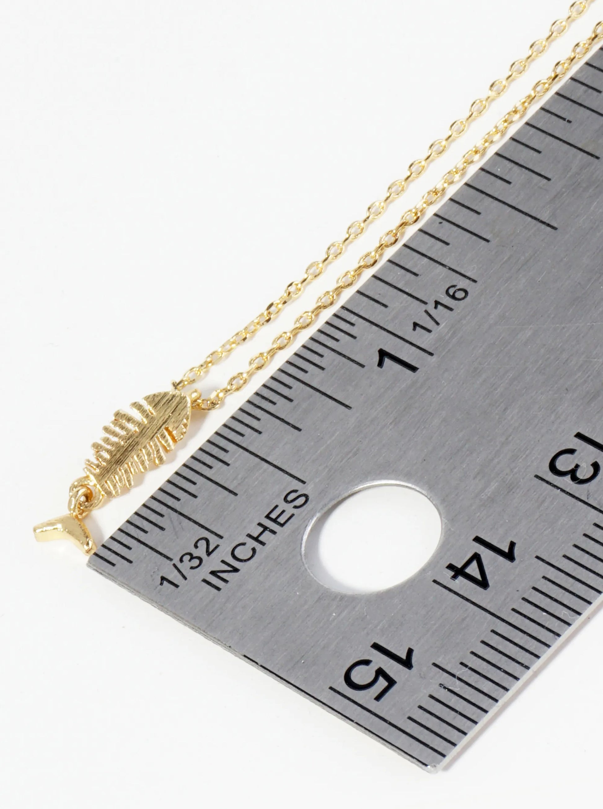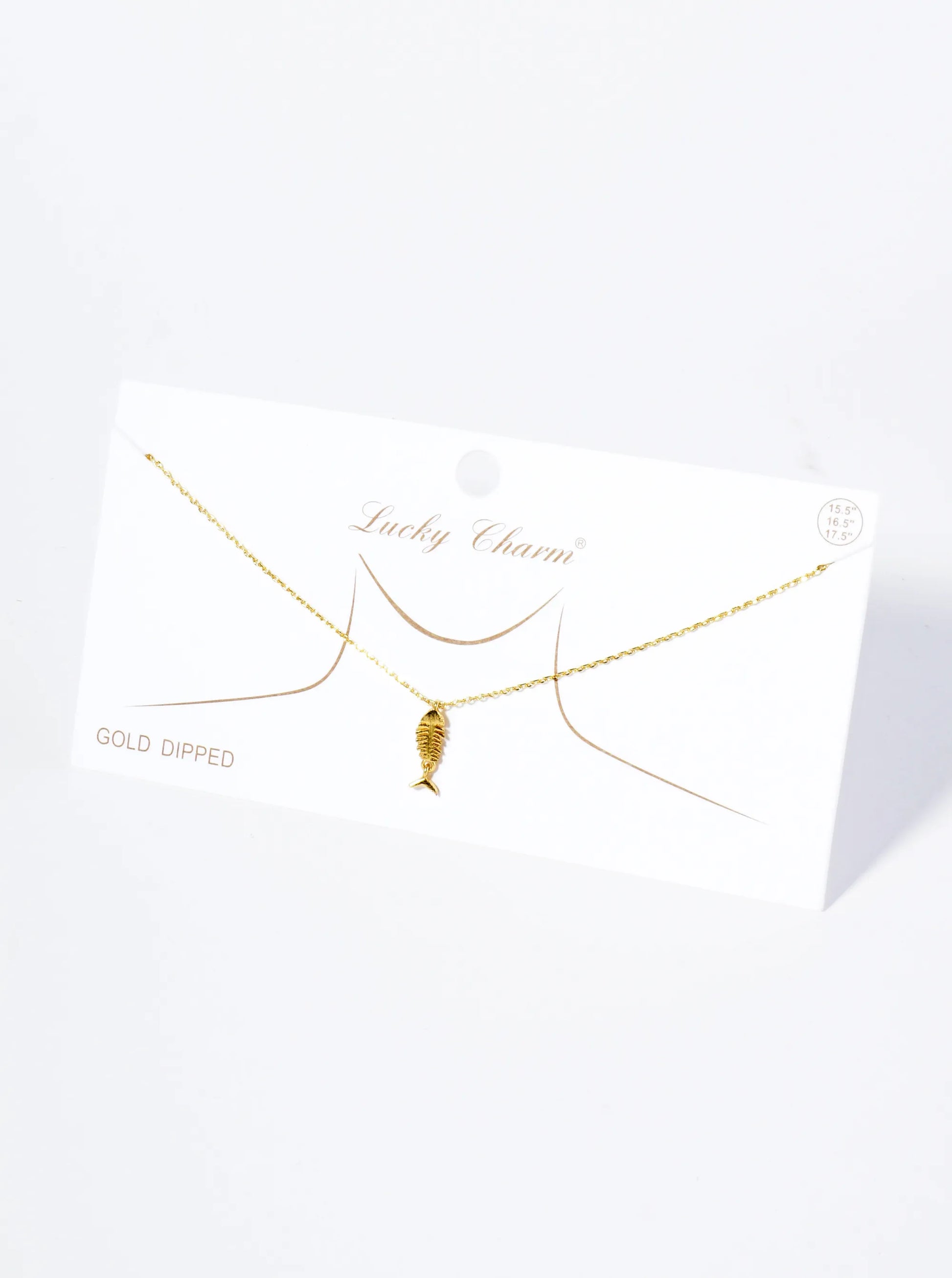 18K Gold Dipped Brushed Brass Fishbone Pendant Necklace